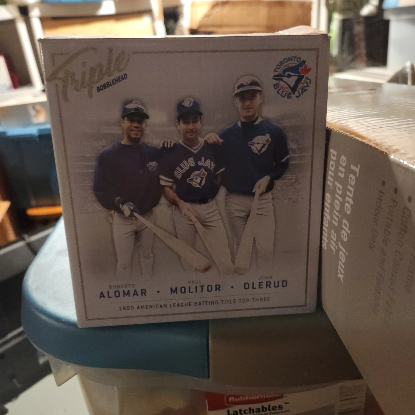 Three bobbleheads featuring the Toronto Blue Jays' 1993 American League Batting Title Top Three: Roberto Alomar, Paul Molitor, and John Olerud. Also includes a Marcus Stroman shimmy wobble bobble and a J.A. Happ bobblehead presented by Honda. They're great collectibles for any Blue Jays fan!