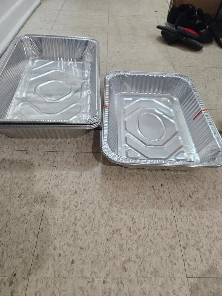 Two aluminum foil baking pans, one slightly larger than the other. Perfect for baking or storing food!