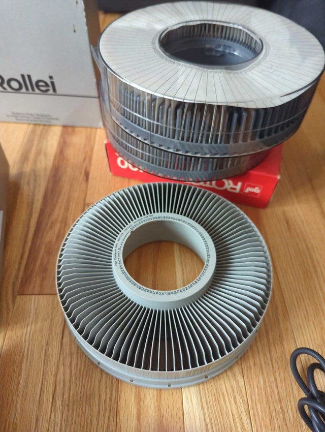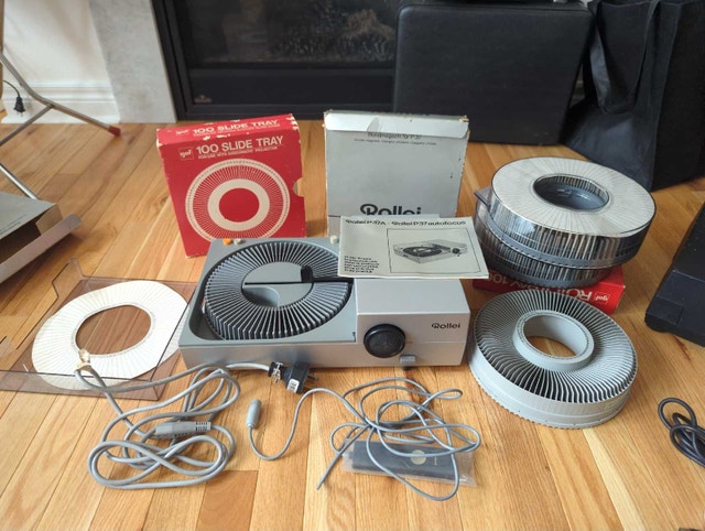Selling a Rollei P37A Autofocus carousel slide projector along with 2 extra Rollei carousels and 2 GAF carousels.