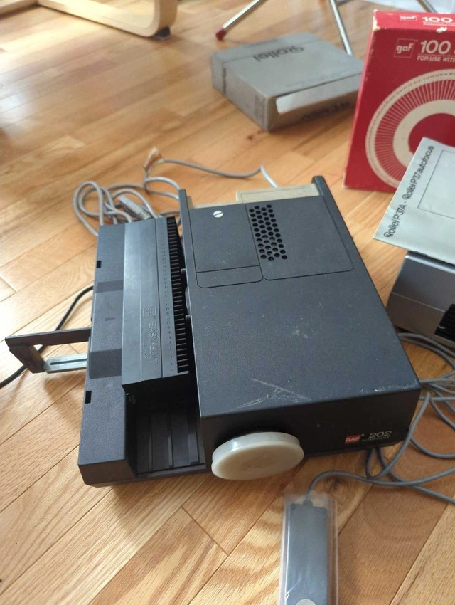 Also selling a GAF 202 cassette slide projector with an extra cassette.
