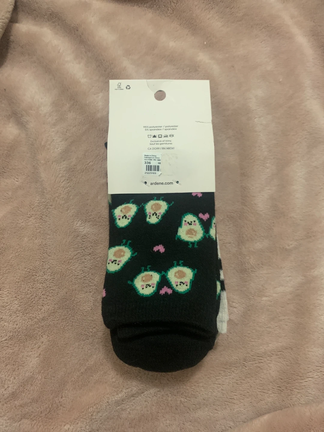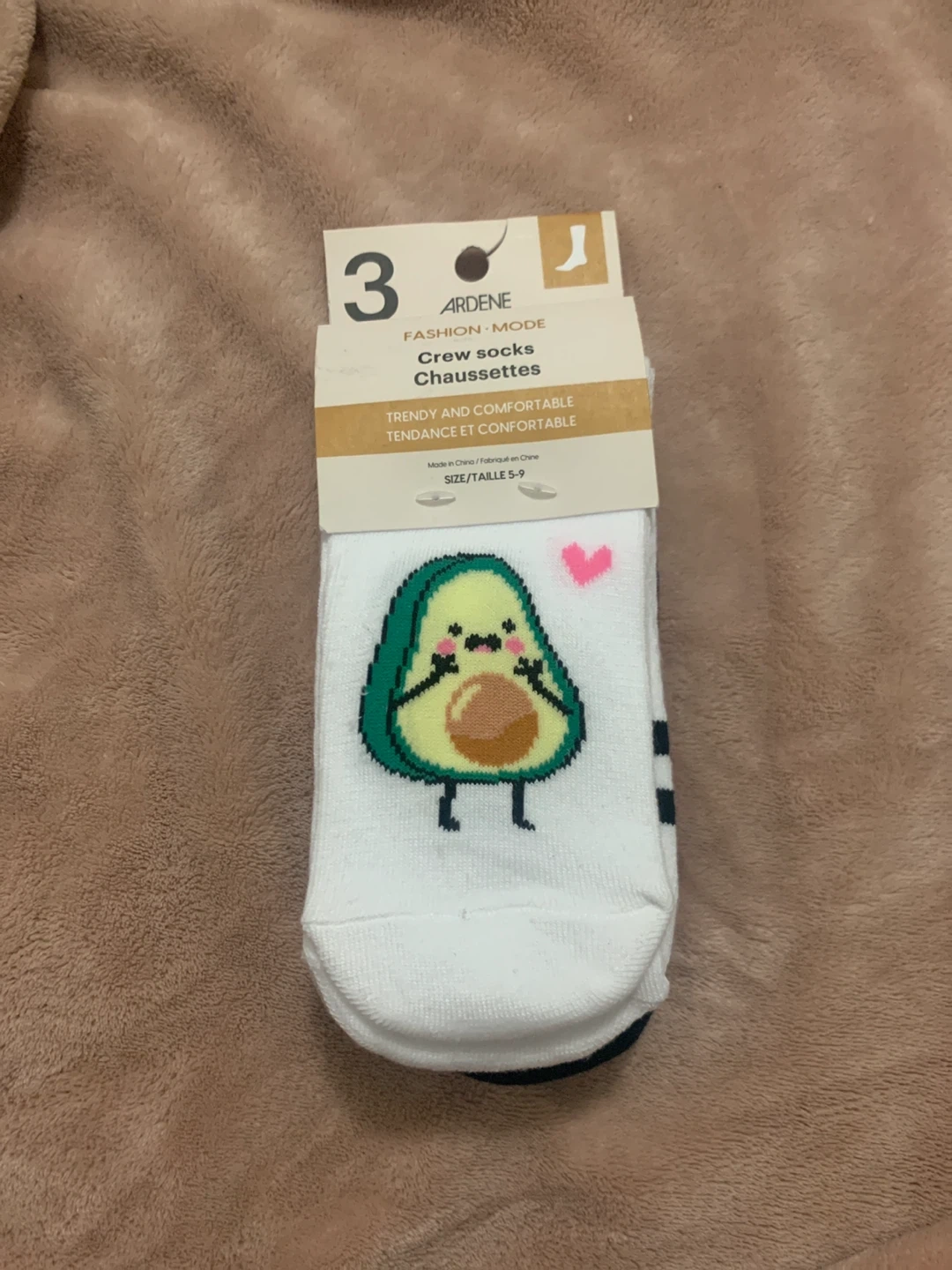 Here's a pack of three Ardene crew socks! They are trendy and comfortable, perfect for everyday wear. The socks feature a fun avocado design.
