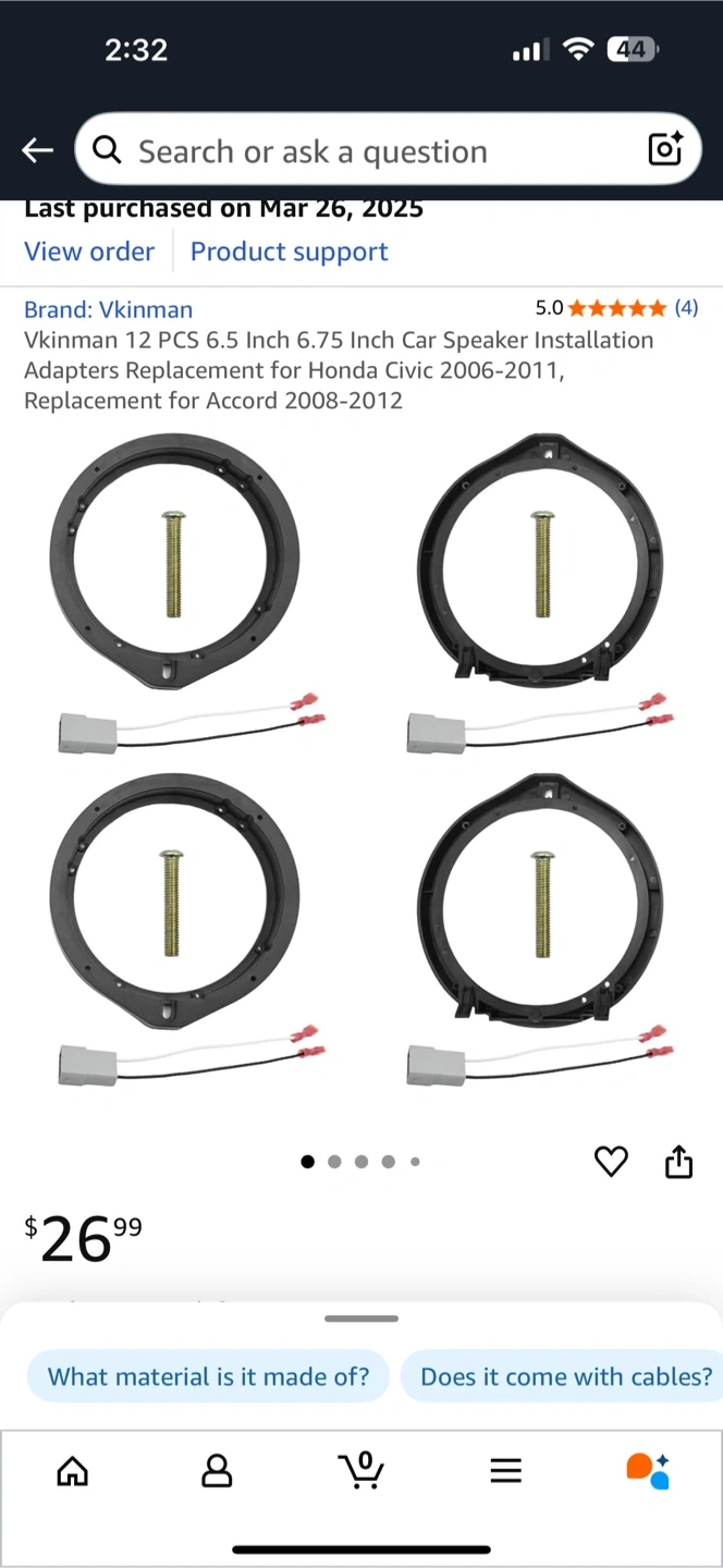 Brand new Vkinman 12-piece speaker adapter kit. • Fits Honda Civic 2006–2011 • Fits Honda Accord 2008–2012 • For 6.5” / 6.75” speakers Still sealed, never opened. Pickup in Chapelle/Terwillegar/Windermere