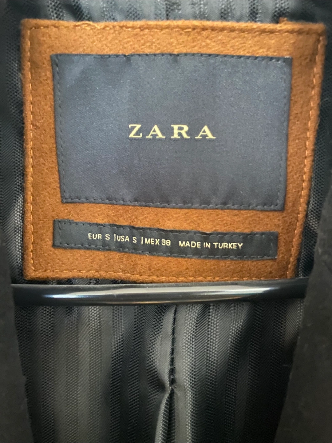Selling a Zara black coat in size S! It's in great condition and perfect for the cooler weather. The coat is made in Turkey and has a stylish design.