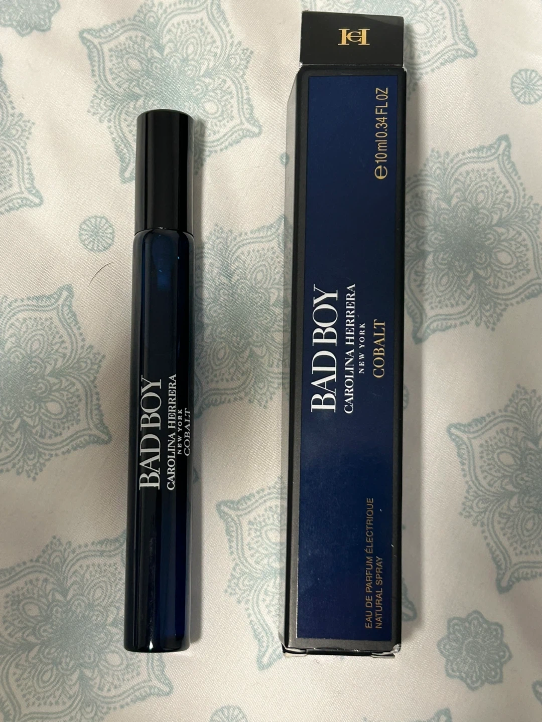 This is Carolina Herrera's Bad Boy Cobalt Eau de Parfum Natural Spray. It's a 10ml bottle and comes in its original box. Eau de Parfum Électrique.