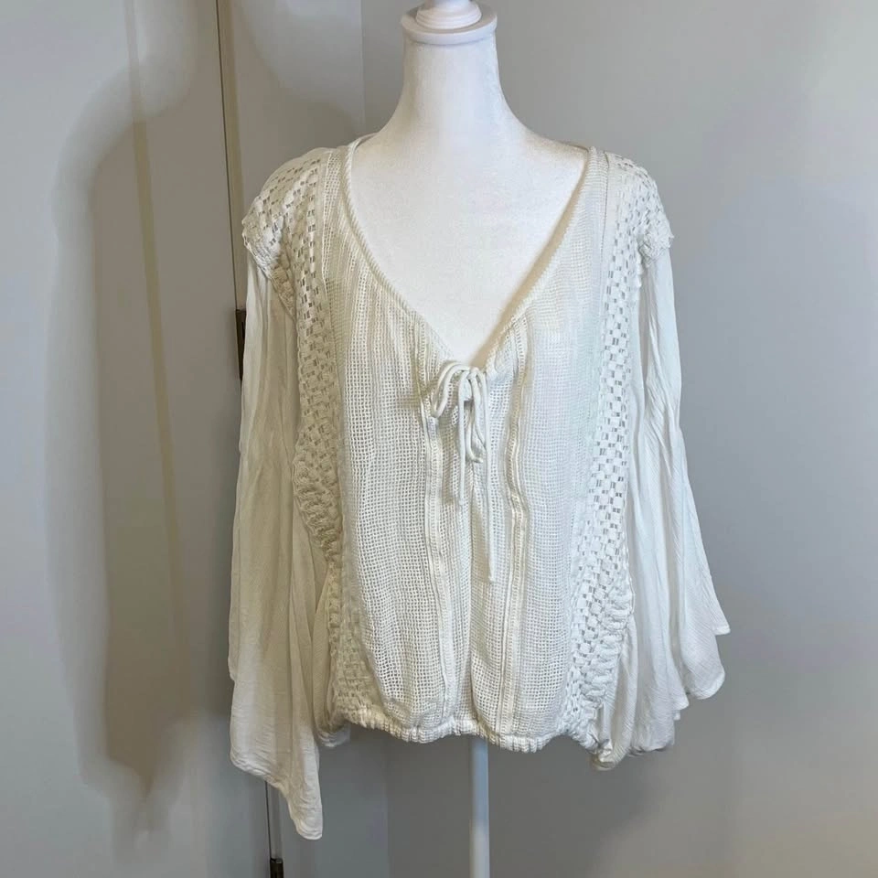 VENUS Off-White Women’s Blouse w/ Crochet Detail - Size L