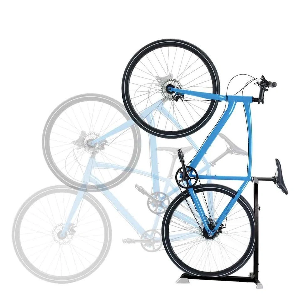 The Bike Nook stand enables you to store your bicycle in an upright, space-saving orientation. Perfect for a townhouse, condo, or any other living arrangement where space might be a concern. They worked really well for us over the years but we've outgrown their use at this time.