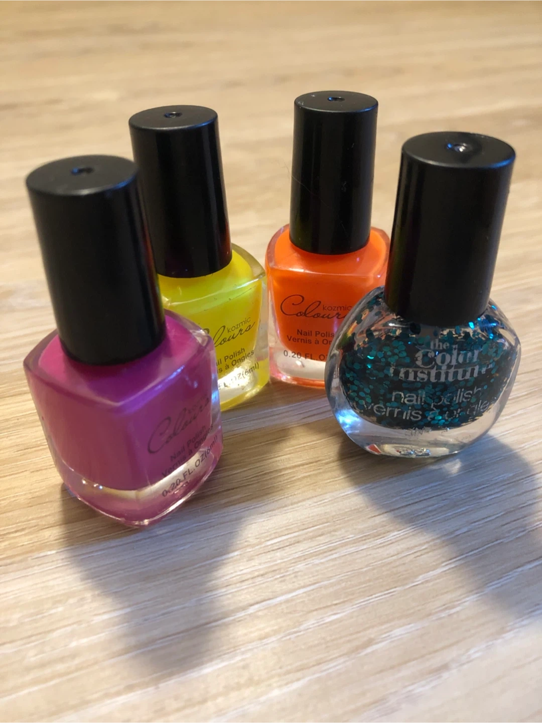 Selling a lot of nail polishes, including Kozmic Colours and The Color Institute brands! Colours include pink, yellow, orange, and a glittery teal. Perfect for adding some fun to your nails! Used but still lots of product left as I didnβt particularly like these ones on me. Iβm someone else can do them justice! π