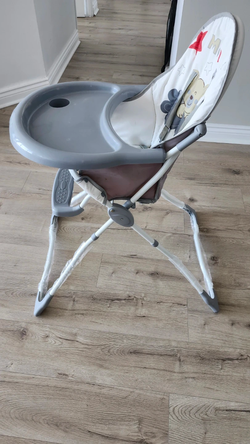 This LIVIQO high chair comes with a padded seat and tray. It's designed with a cute teddy bear theme. The chair is foldable for easy storage.