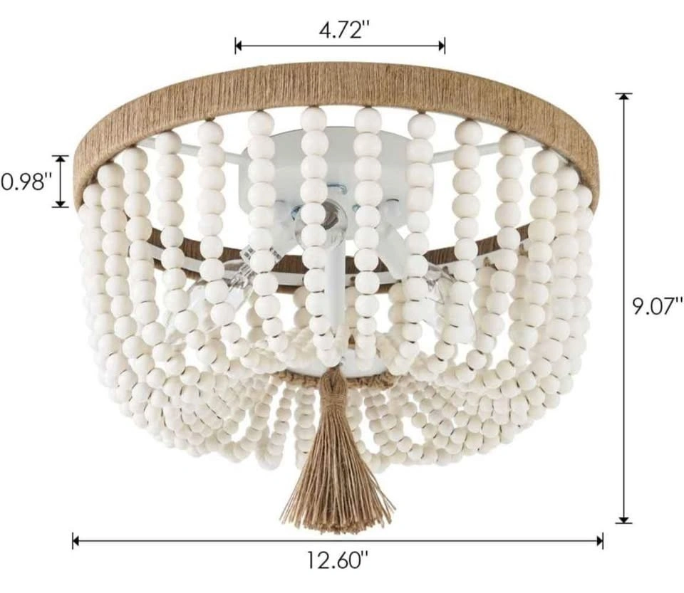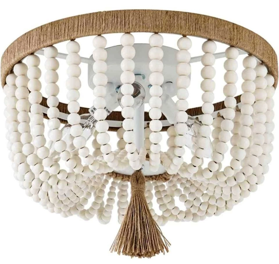 Ceiling light decorated with classic Bohemia style elements, made up of solid white wood beads and hand rope knot. Creates an eye-catching look that lends bohemian flair to any area. Great for a bedroom or nursery.