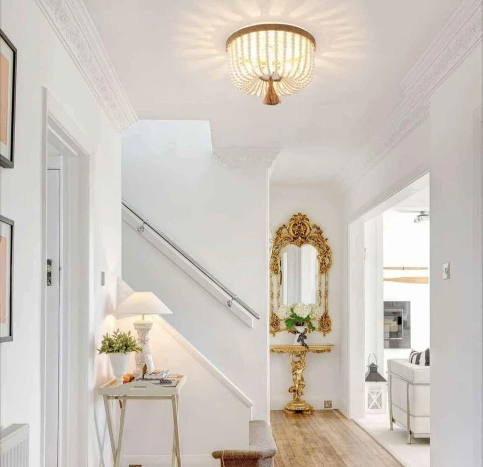 Bohemia Boho Wood Beaded Flush Mount Ceiling Light Antique Rusti