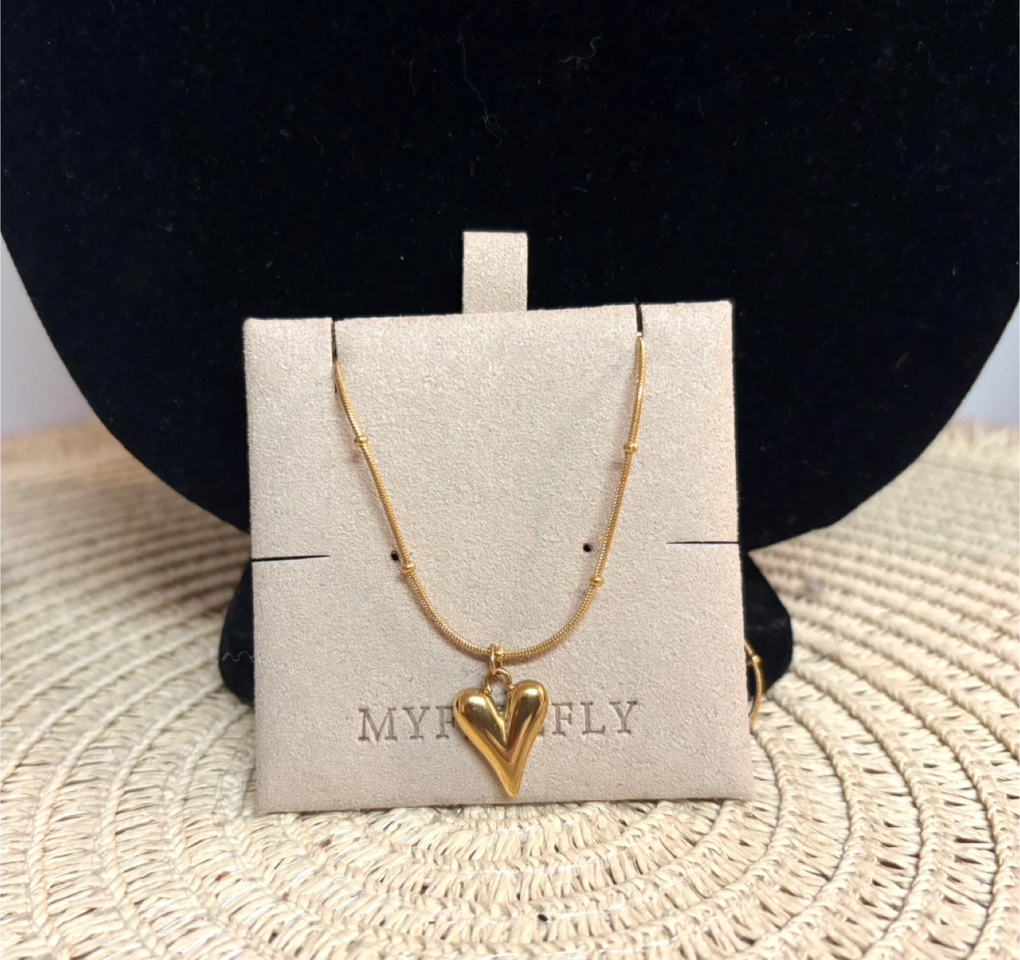 Features a small heart pendant.