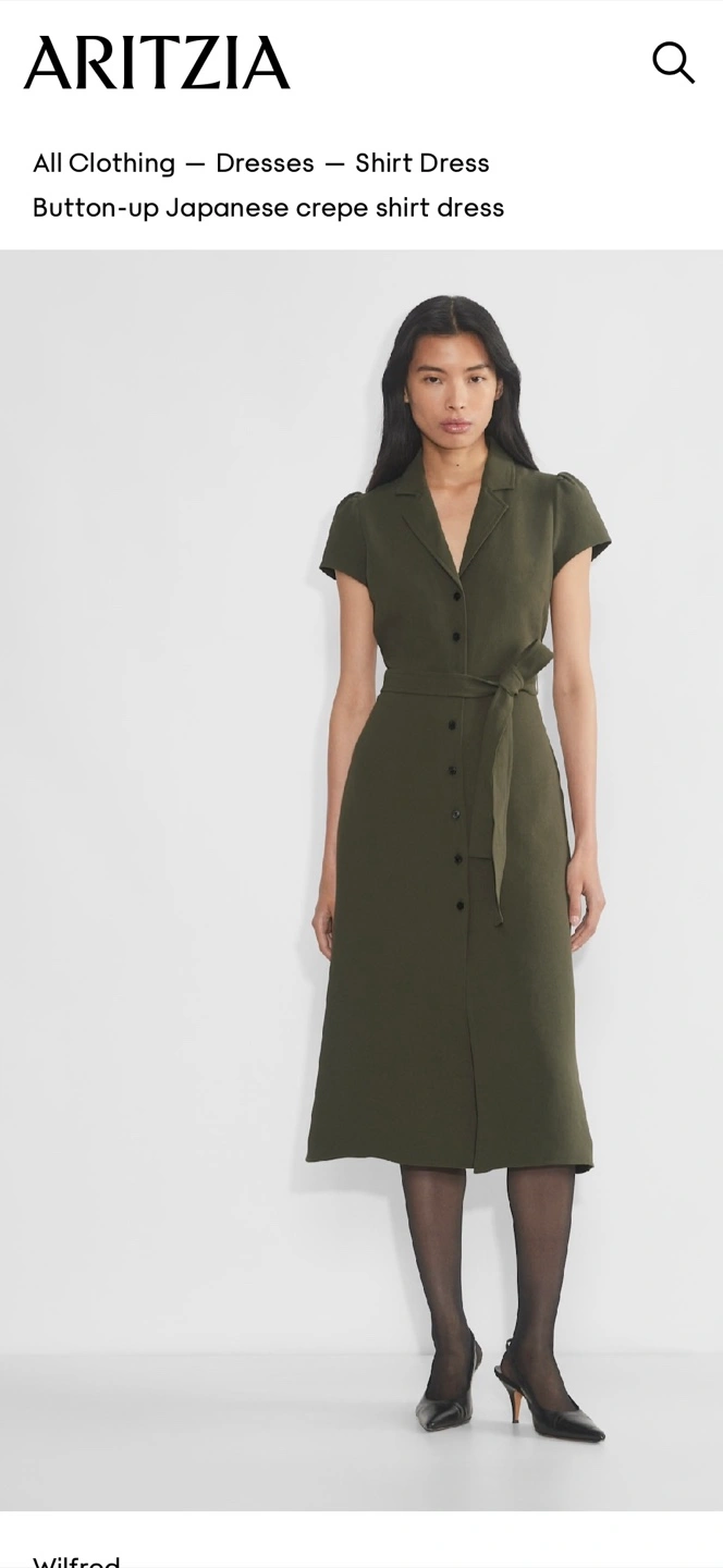 Selling a Wilfred button-up Japanese crepe shirt dress from Aritzia. It's a stylish and comfortable piece that can be dressed up or down. Perfect for any occasion!