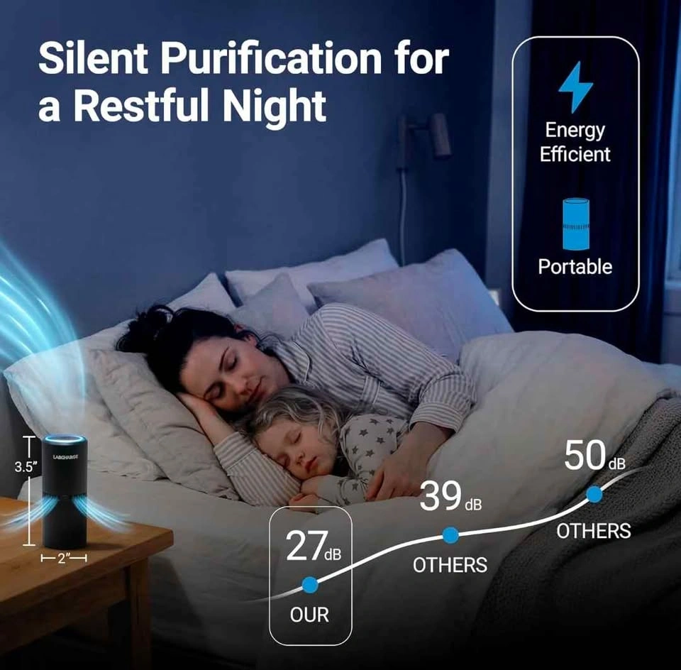 This small air purifier plugs in easily and fits any room. Perfect as a bedroom air purifier or for office desks, they offer zero-maintenance use and whisper-quiet function. They support a cleaner environment with no effort.