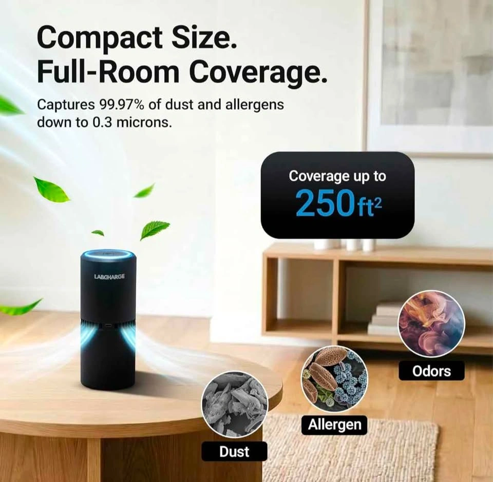 LabCharge Small Ionic Air Purifier - HEPA Filter - Covers 250 Sq
