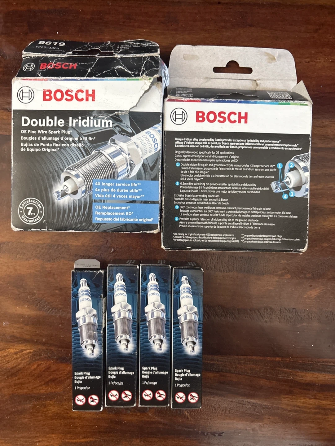 Bosch Double Iridium OE Fine Wire spark plugs. Unique iridium alloy for exceptional ignitability and performance.