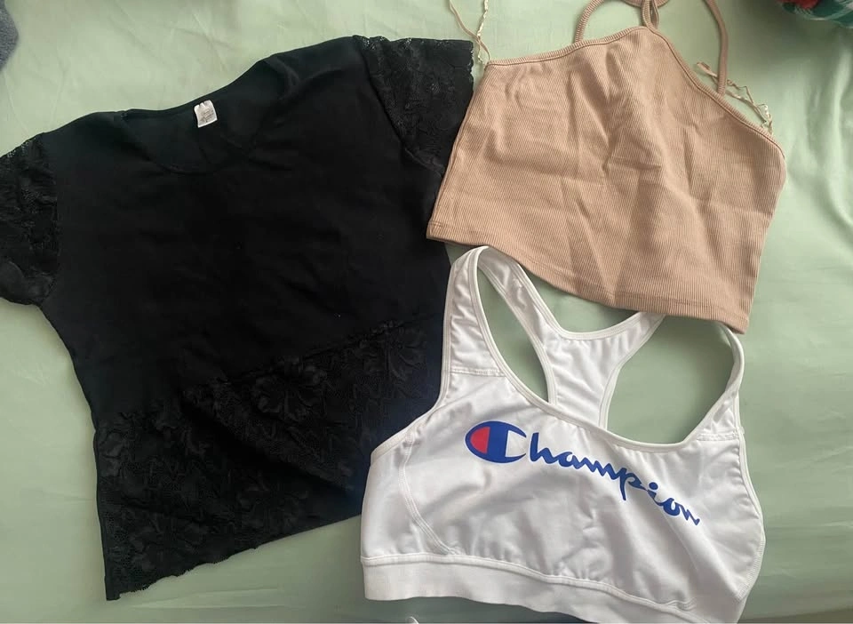 Getting rid of old clothes! Leliha black top: Large but cropped. Zara Beige crisscross tank: Large. Champions white Sports bra: 1XL - 14 youth. All for $5