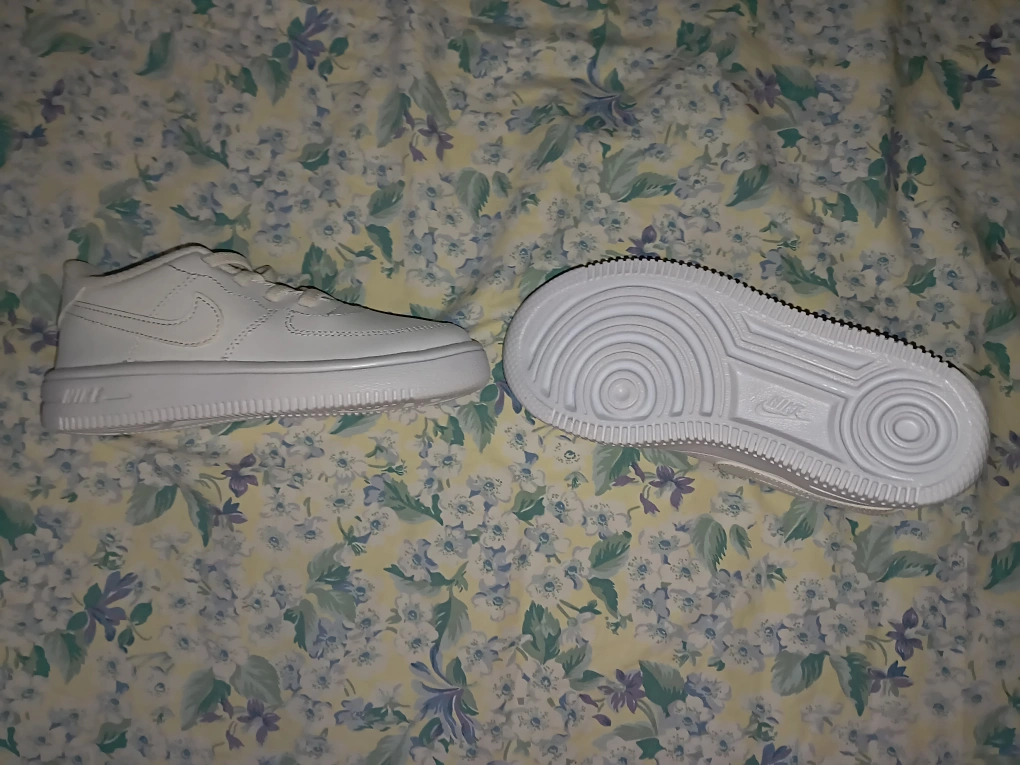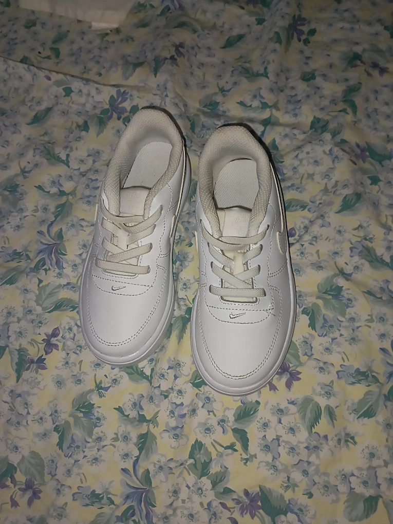 Selling a pair of Nike Air Force 1s in size 10C. They are white and in good condition! Perfect for everyday wear.
