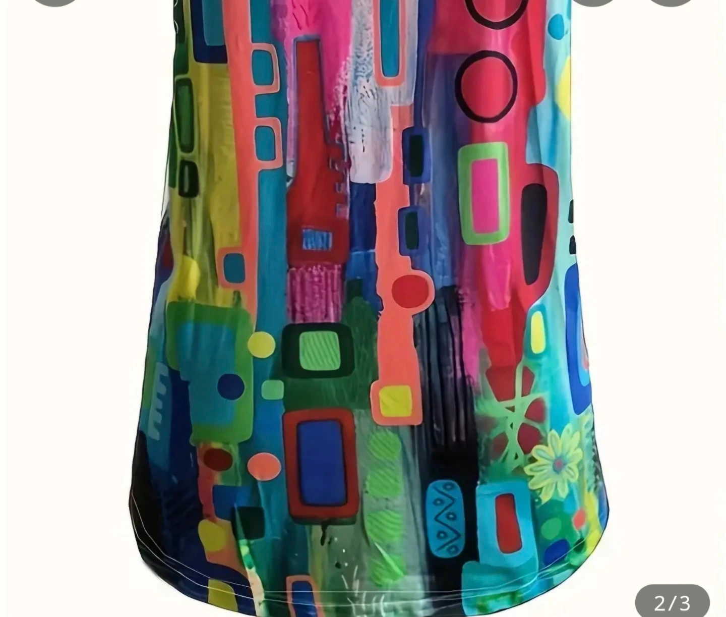 Fun and colourful abstract print sleeveless top. It's got a V-neck with button-up detail. Great for adding a pop of colour to your outfit!