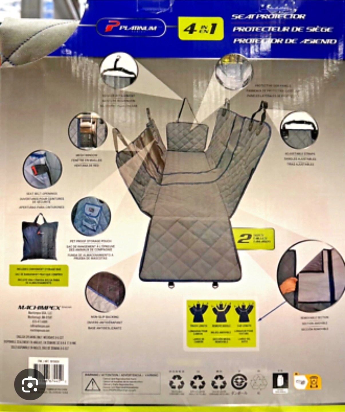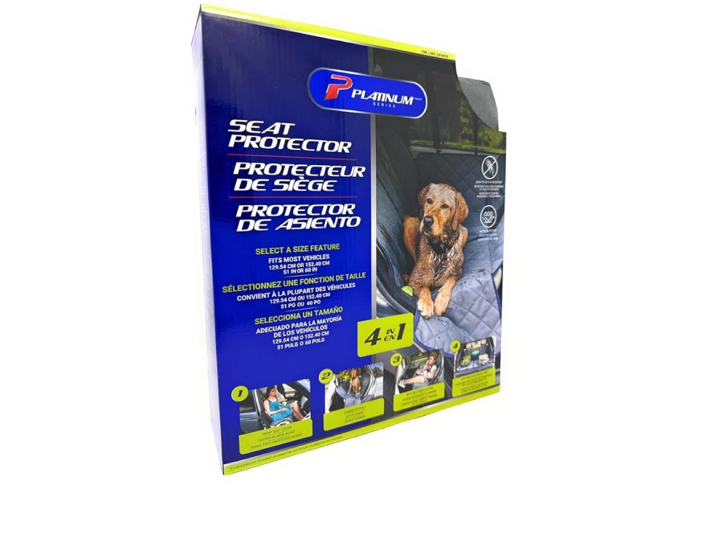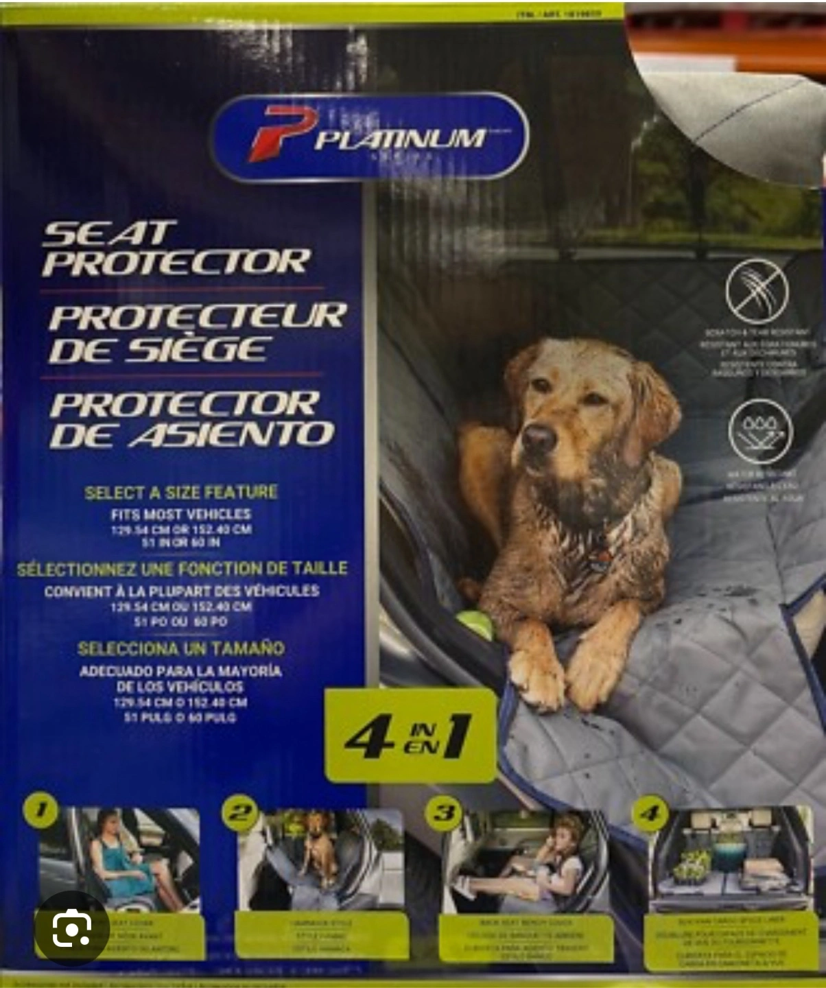This brand new Platinum 4-in-1 seat protector fits most vehicles, with size features of 129.54 cm or 152.40 cm (51 in or 60 in), providing ultimate protection for your car seats. It's perfect for pet owners or anyone looking to keep their vehicle interior clean!