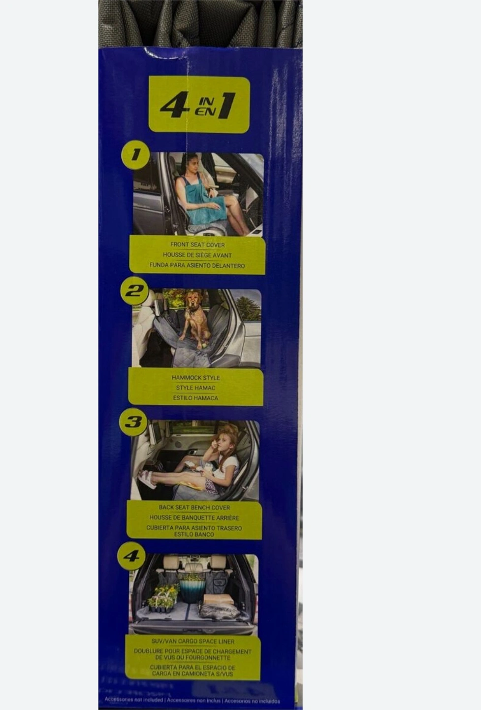 4 configuration options: Front seat cover, hammock style, back seat bench cover, SUV/van cargo space liner