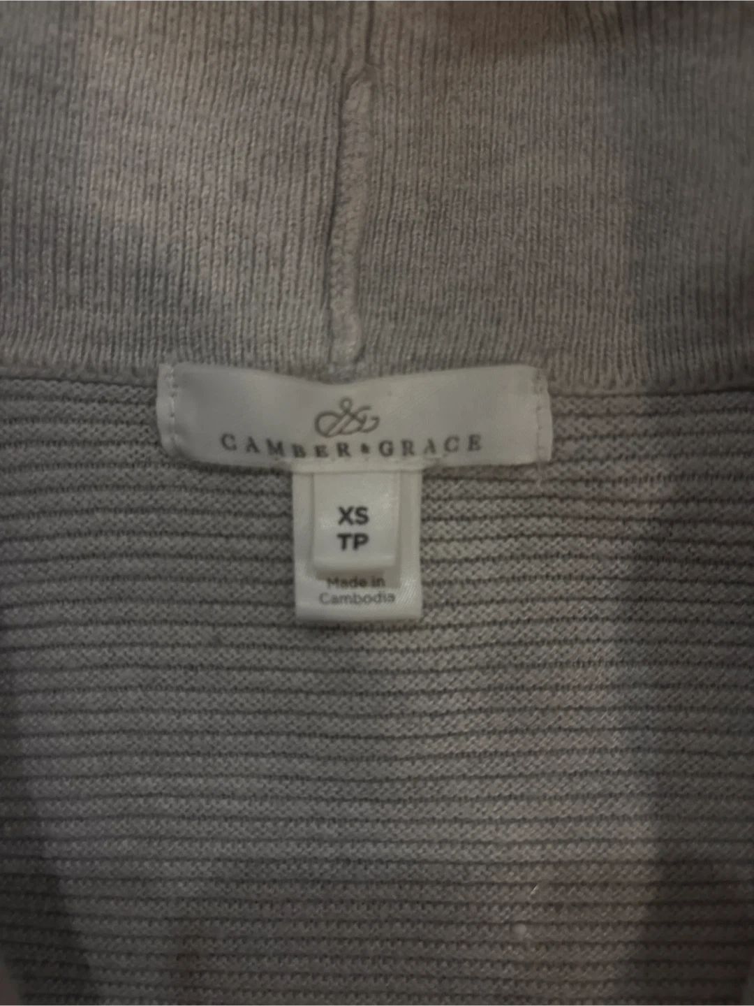 Buy & SellCamber & Grace Cardigan XSCamber & Grace Cardigan XS$8Light grey cardigan by Camber & Grace. Size XS. Ribbed knit construction. Open front design.ConditionGoodBrandCamber & GraceWHERE TO MEETCheck LocationView MapSELLERLauraBloor West Village13814 reviews0 chats·0 favorites·3 viewsSEND CHAT TO SELLERHi Laura! I’m interested in your listing.Hi Laura! I’m interested in your listing.Get the Karrot app to chatSign In to chat