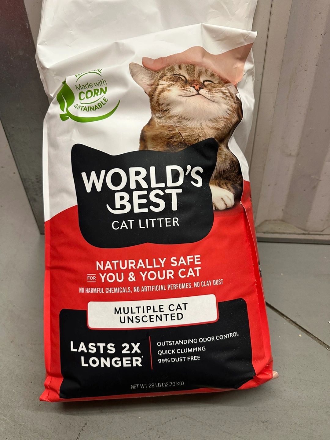 World's Best Cat Litter in unscented. It's naturally safe for you and your cat, with no harmful chemicals, artificial perfumes, or clay dust. Outstanding odor control and quick clumping with 99% dust-free formula. Lasts 2x longer!