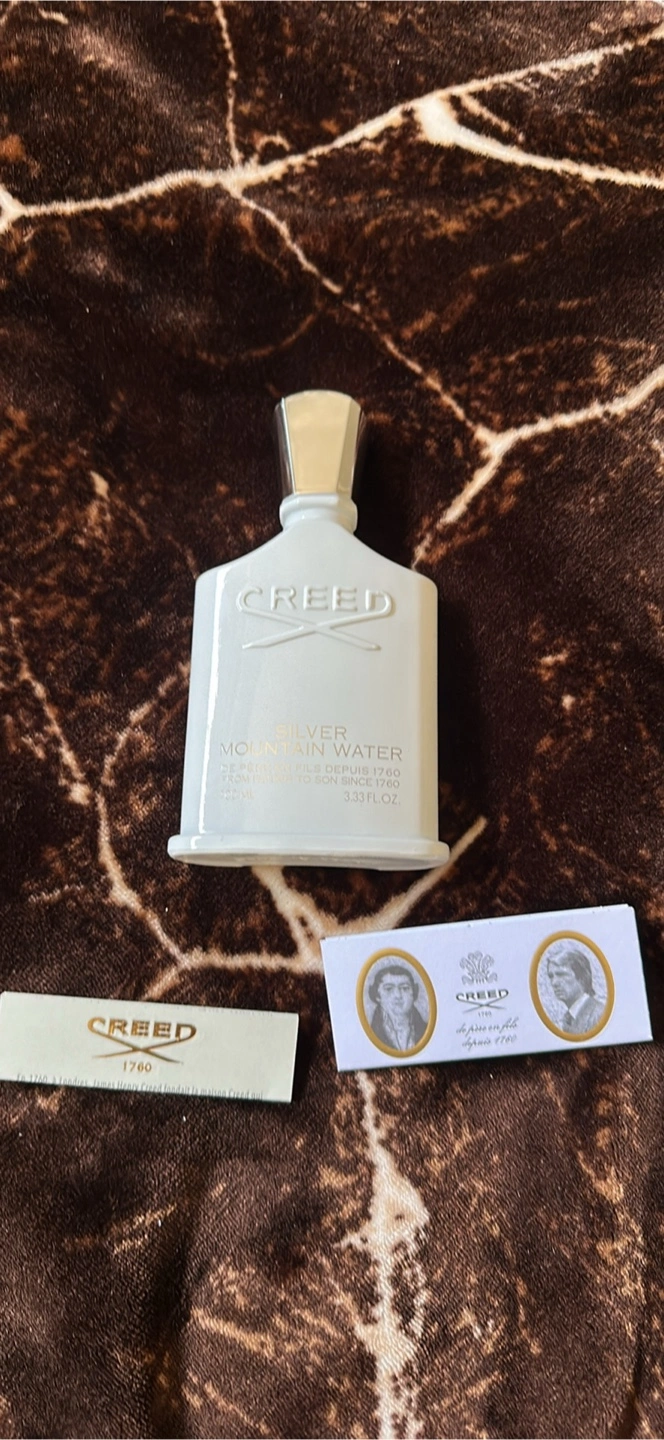 Creed Silver Mountain Water Eau de Parfum. 100ml bottle. Includes box and sample cards. Used once