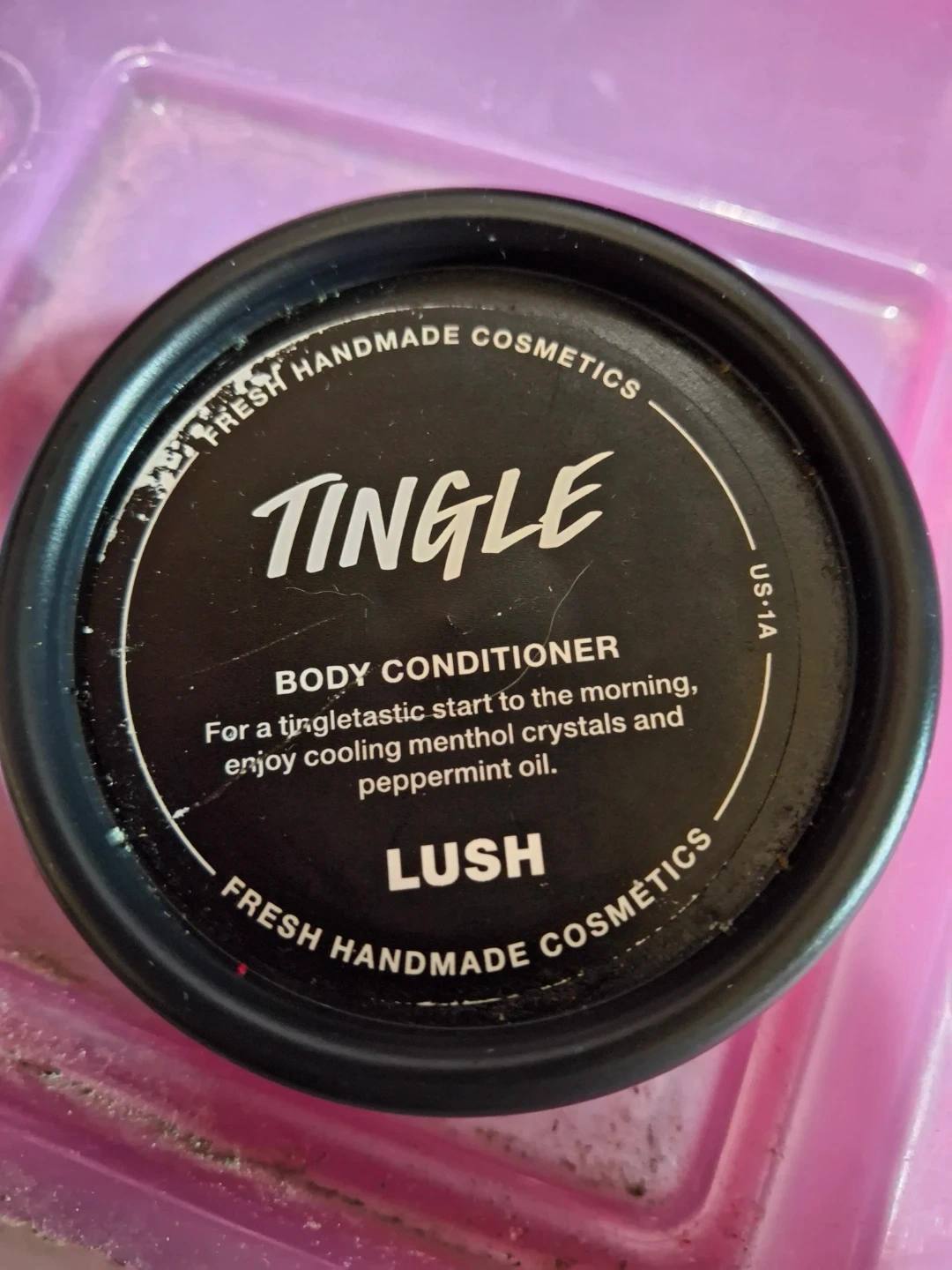 Lush Tingle Body Conditioner for a tingle-tastic start to the morning! Enjoy cooling menthol crystals and peppermint oil for hydrated and soothed skin. Jojoba oil, murumuru, and shea butters nourish and soften.