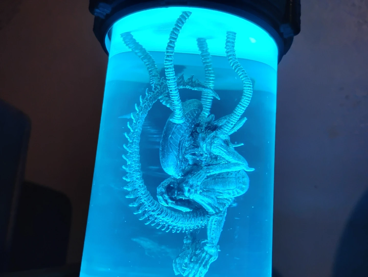 Cool display piece featuring a Xenomorph figure suspended in a blue, glowing tube. It's great for any fan of the Alien movies! The tube has a black base and lid. Bought for 240 lights up different colors with a remote to control it