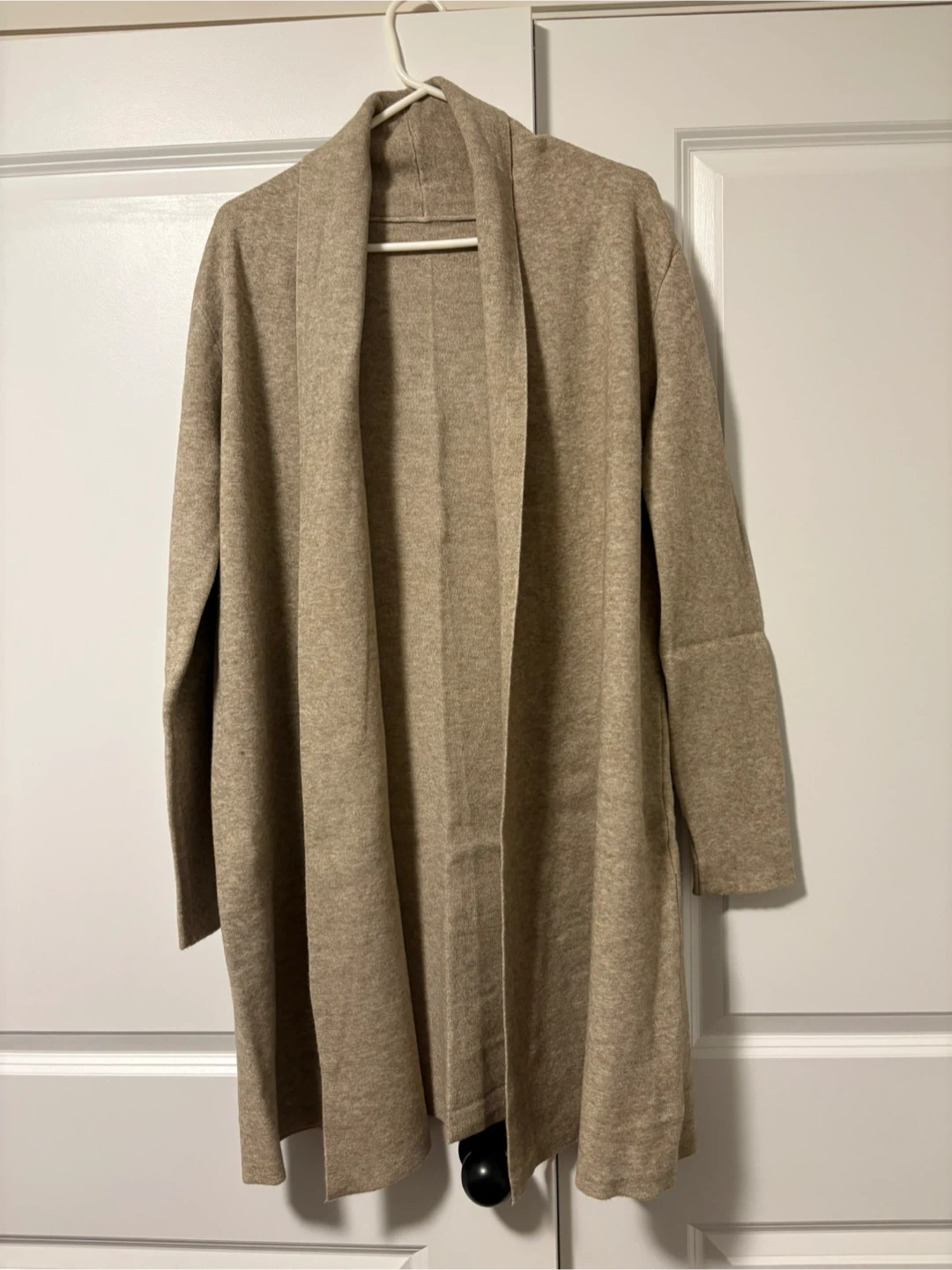 Brand new! Never worn. Cozy tan cardigan, perfect for layering. It's made of a soft knit material. This piece is great for transitional weather!