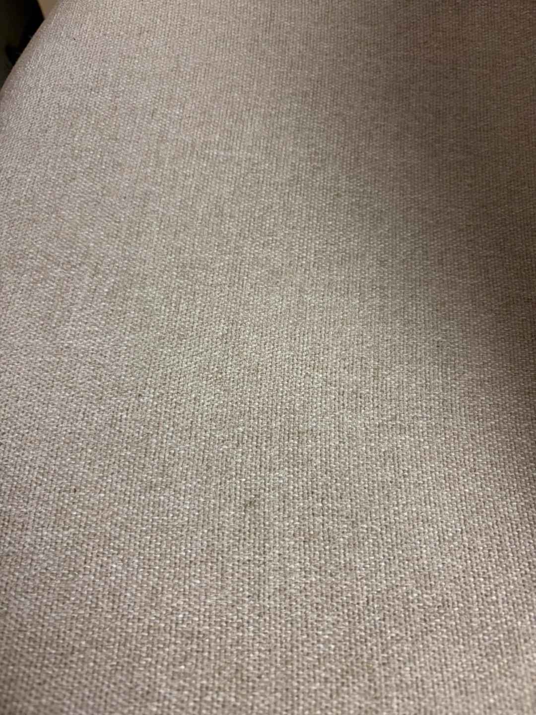 This is a stylish dining chair upholstered in a light grey fabric. It features solid wood legs for stability. It's a comfortable seating option for your dining room or kitchen nook.