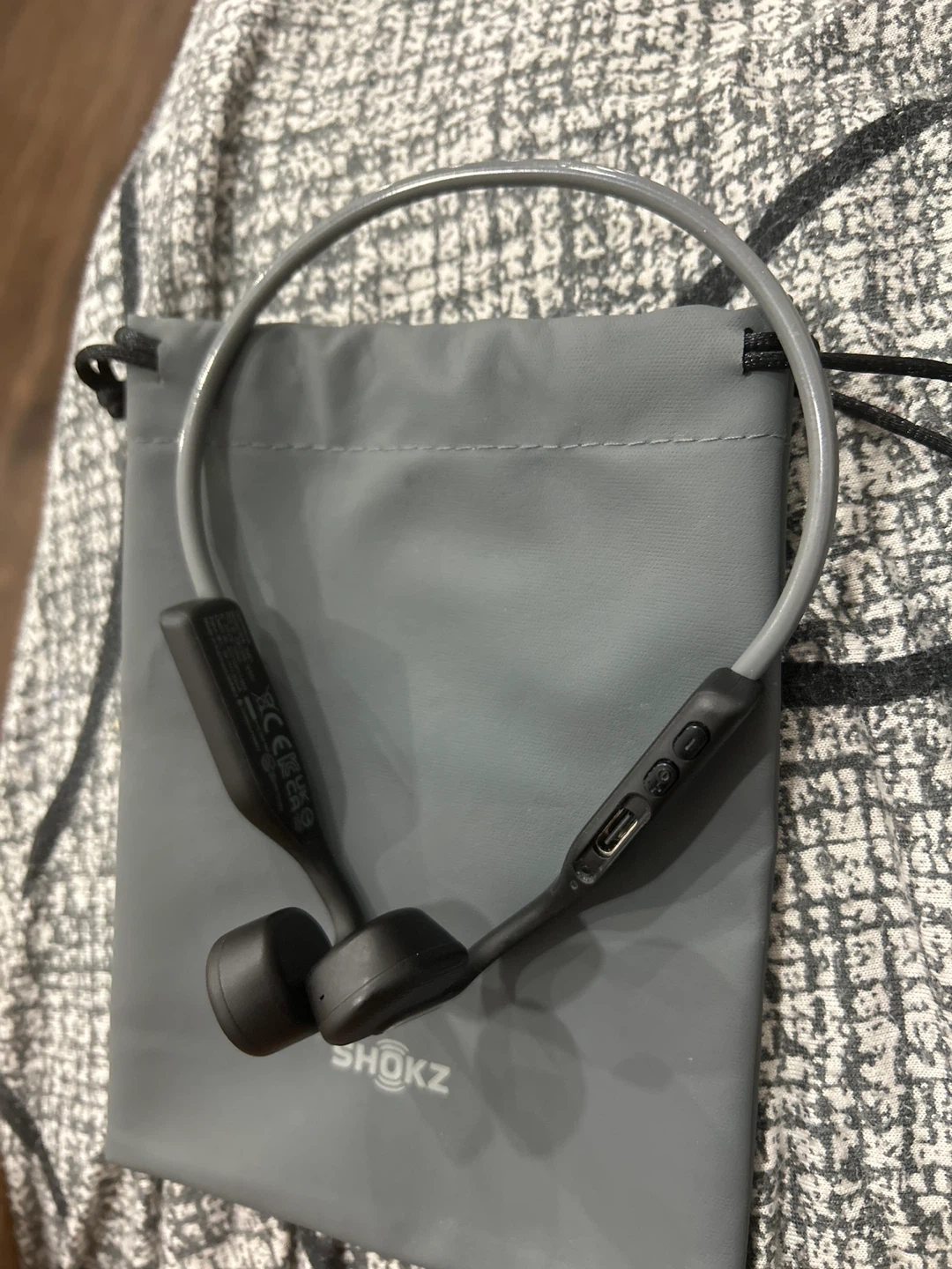 Selling a pair of Shokz OpenMove bone conduction headphones in grey. These are great for listening to music or podcasts while still being aware of your surroundings. They come with their original carrying pouch!