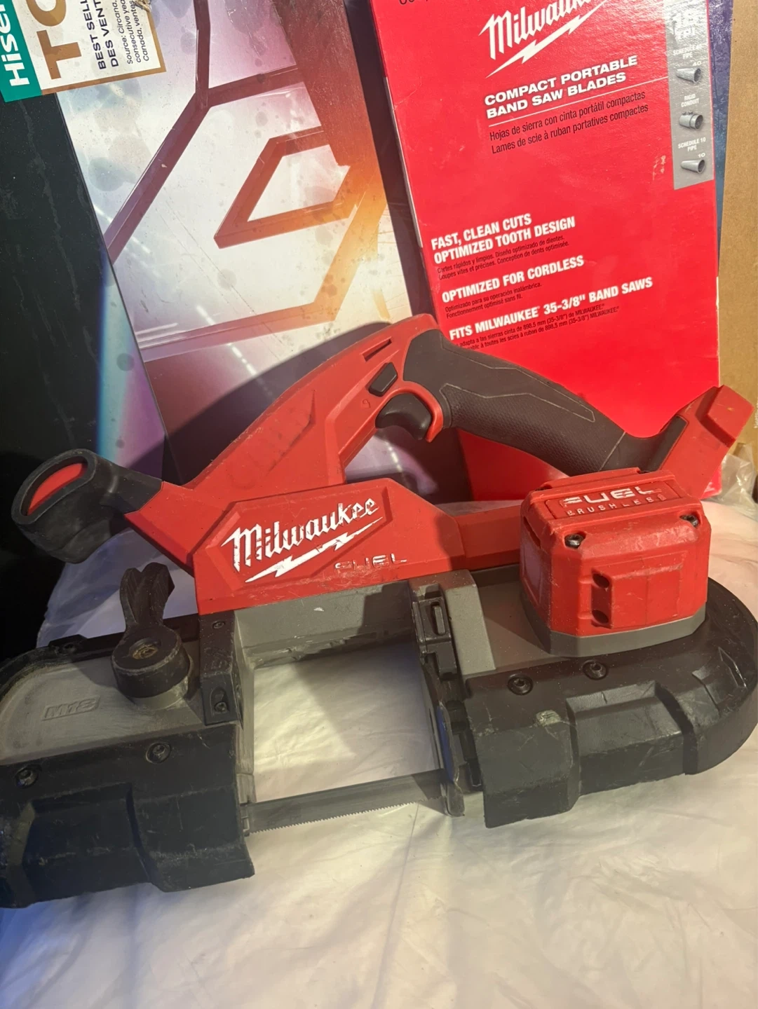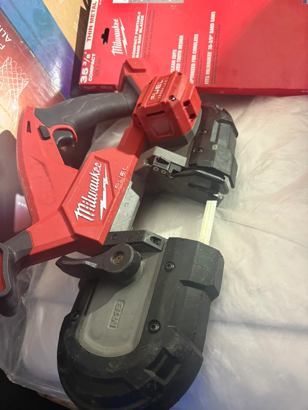 This is a Milwaukee M18 FUEL compact band saw. It's designed for fast, clean cuts and fits 35-3/8" band saws. Optimized for cordless use.