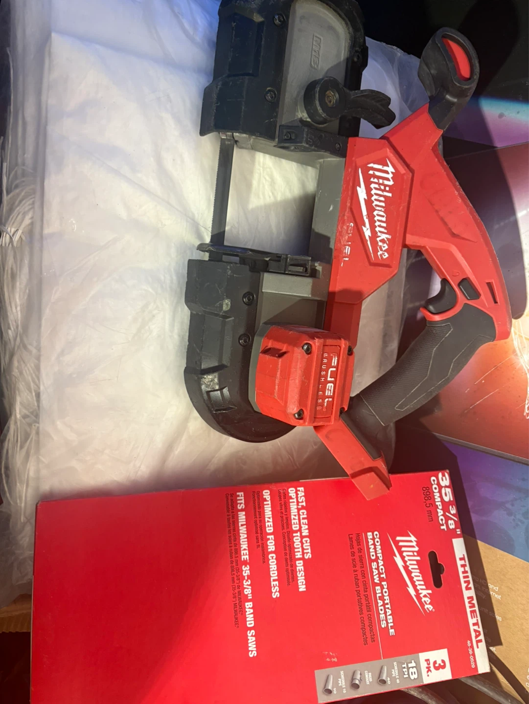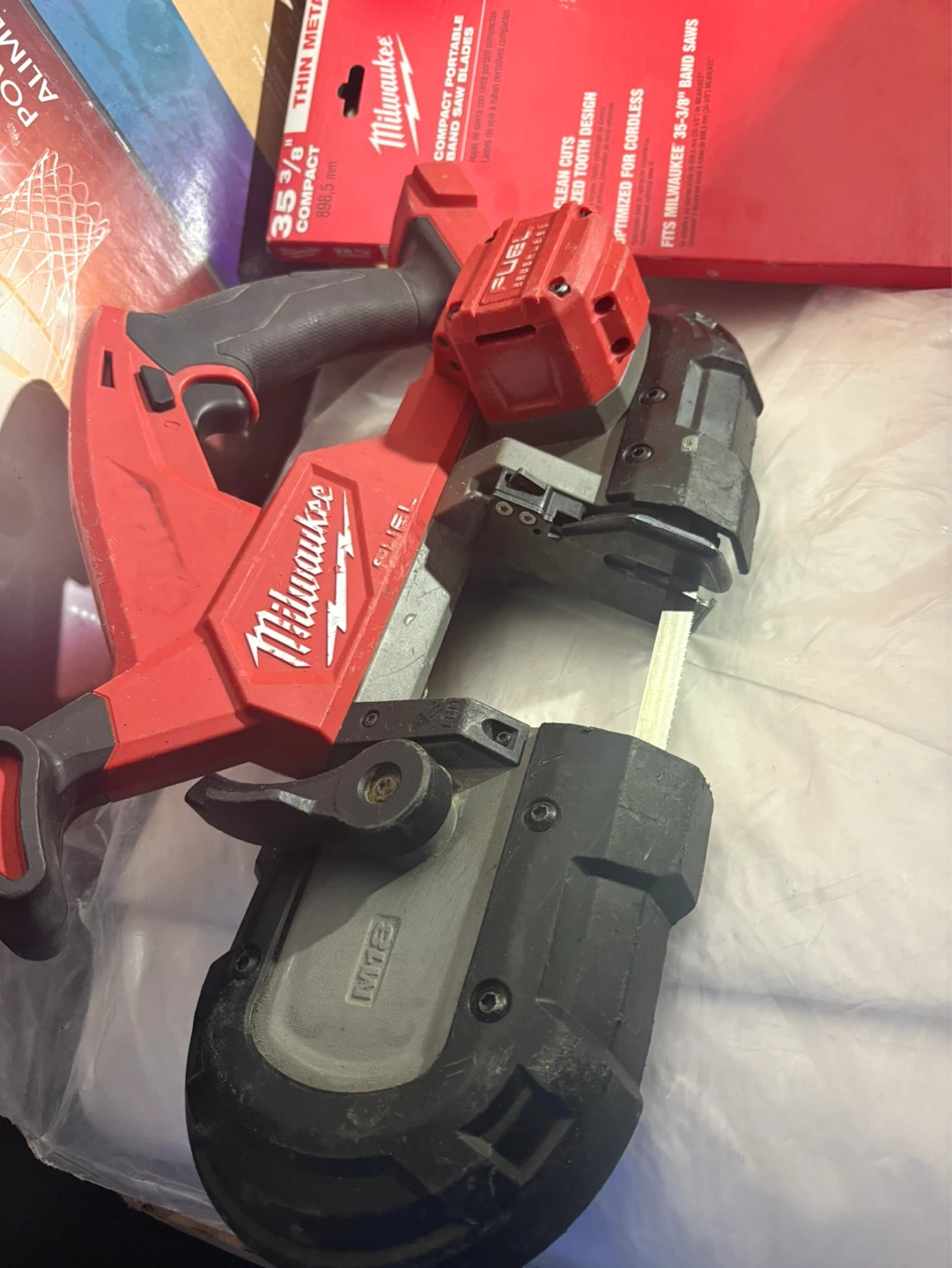 This is a Milwaukee M18 FUEL compact band saw. It's designed for fast, clean cuts and fits 35-3/8" band saws. Optimized for cordless use.