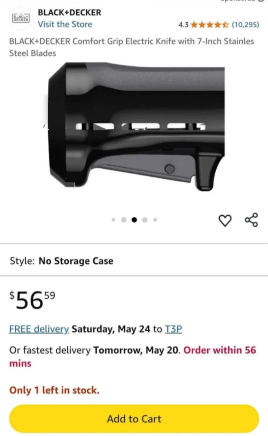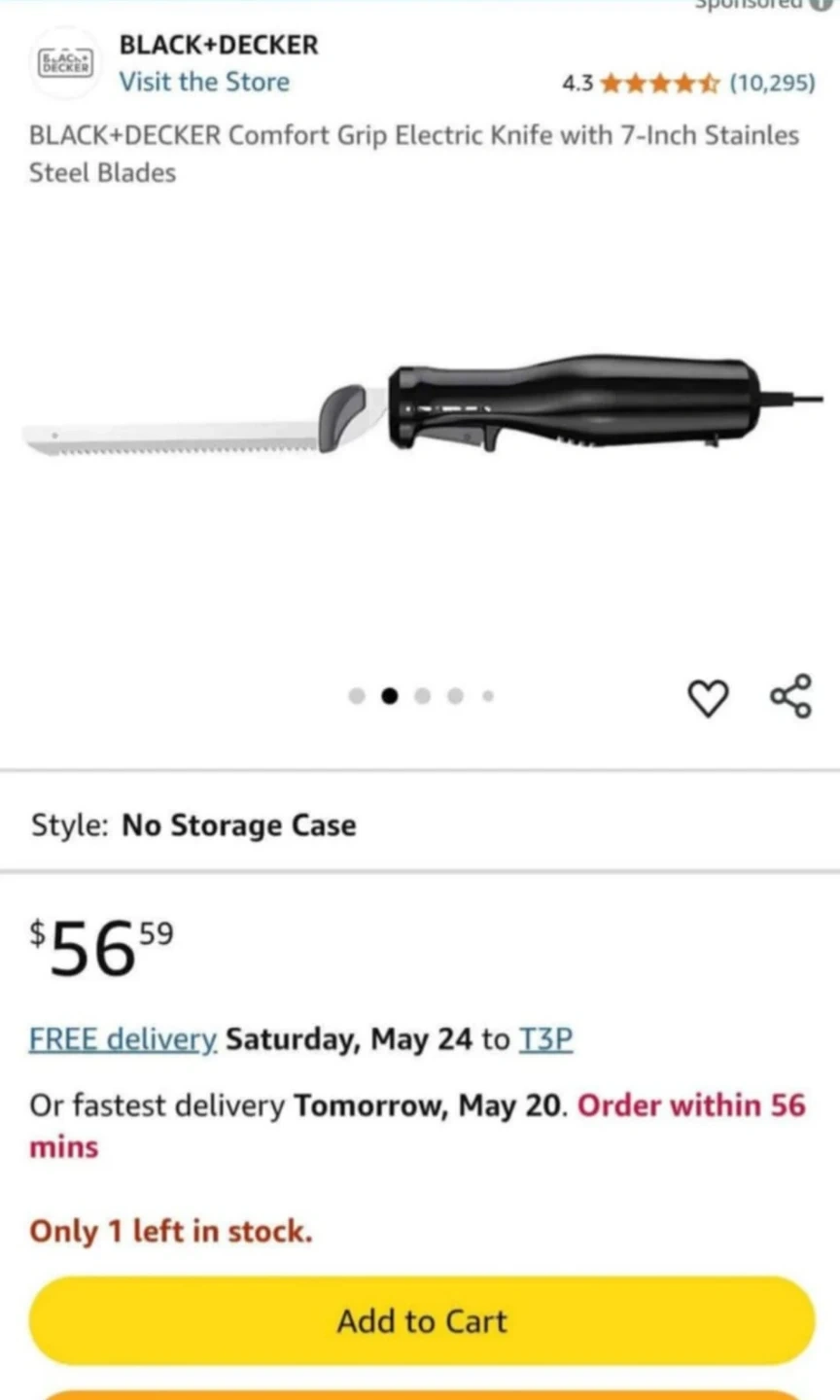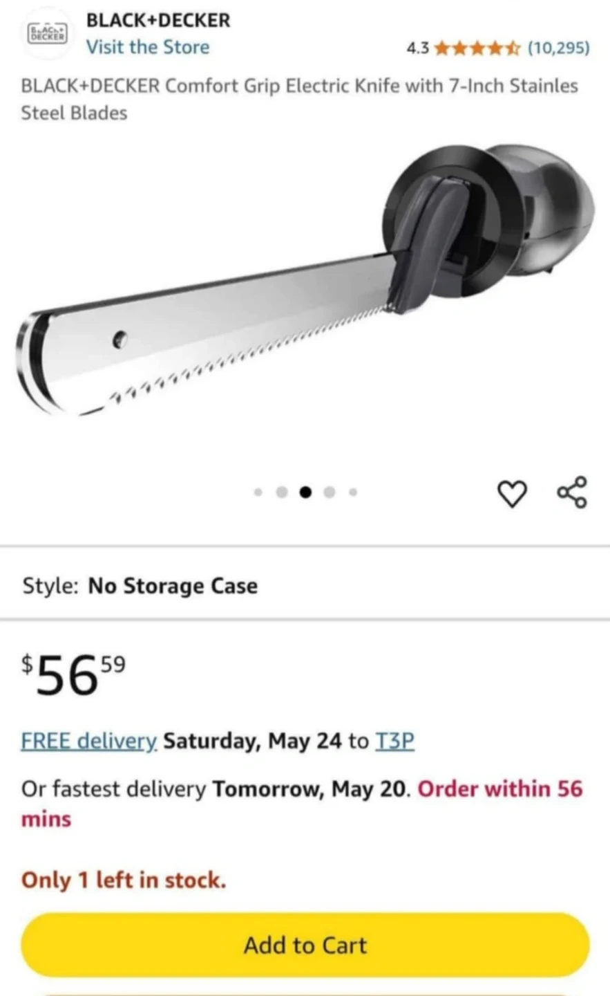 Buy & SellComfort Grip Electric Knife with 7-Inch Stainless Steel Bl...Comfort Grip Electric Knife with 7-Inch Stainless Steel Bl...$30Comfort Grip Electric Knife with 7-Inch Stainless Steel Blades New never usedConditionNewWHERE TO MEETCheck LocationView MapSELLERAmandaNorthwest Calgary394 reviews0 chats·0 favorites·3 viewsSEND CHAT TO SELLERHi Amanda! I’m interested in your listing.Hi Amanda! I’m interested in your listing.Get the Karrot app to chatSign In to chat