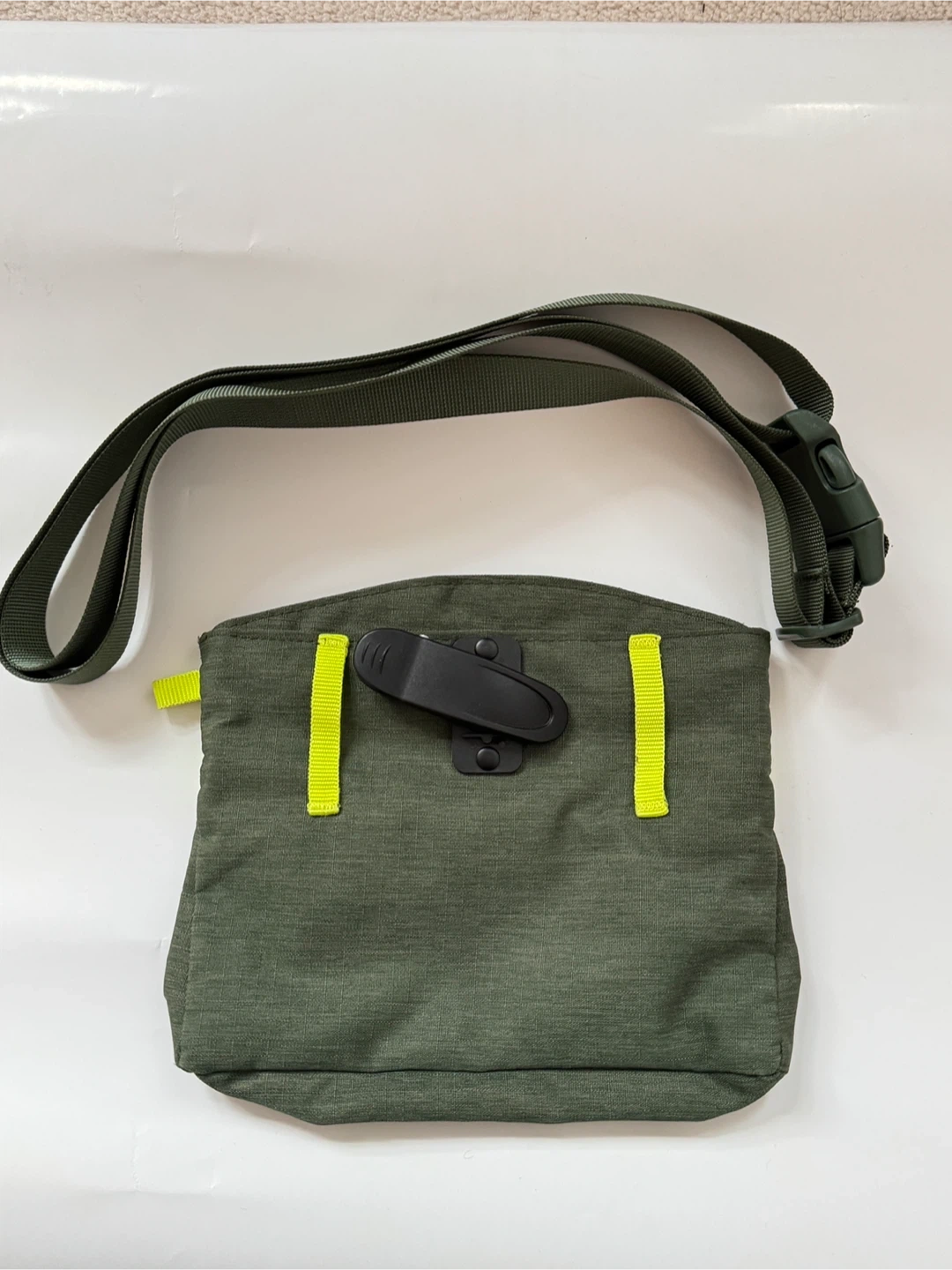 This RC Pets treat bag is in heather olive. It has a zippered top and a clip for attaching to a belt or bag. Perfect for carrying dog treats on walks!