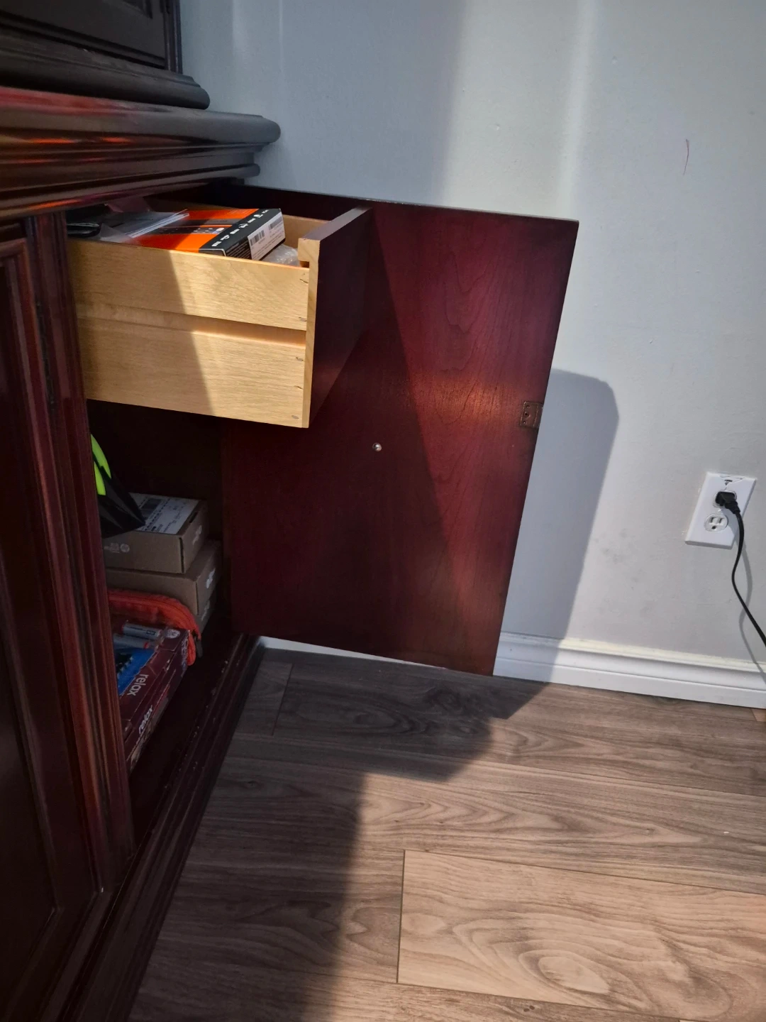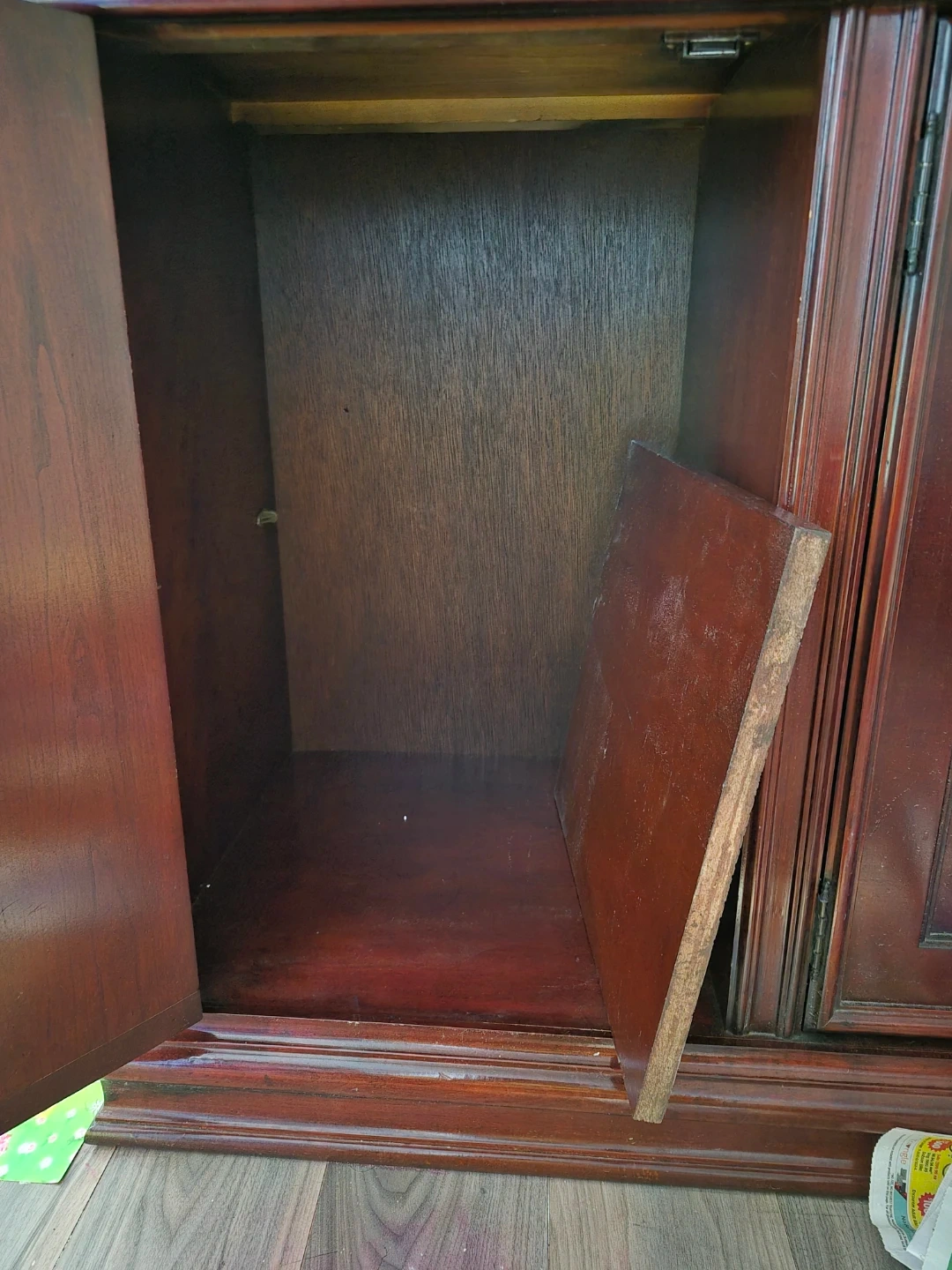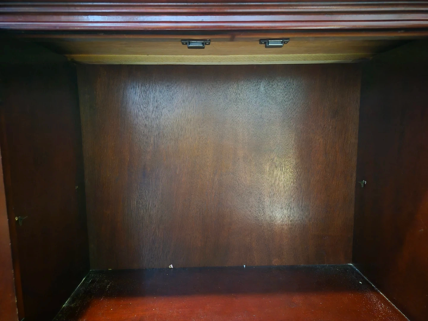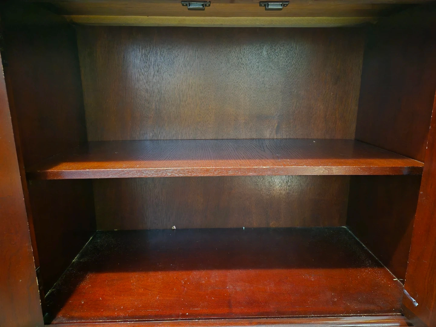 Buffet cabinets each with single adjustable shelf and one drawer with felt lining.