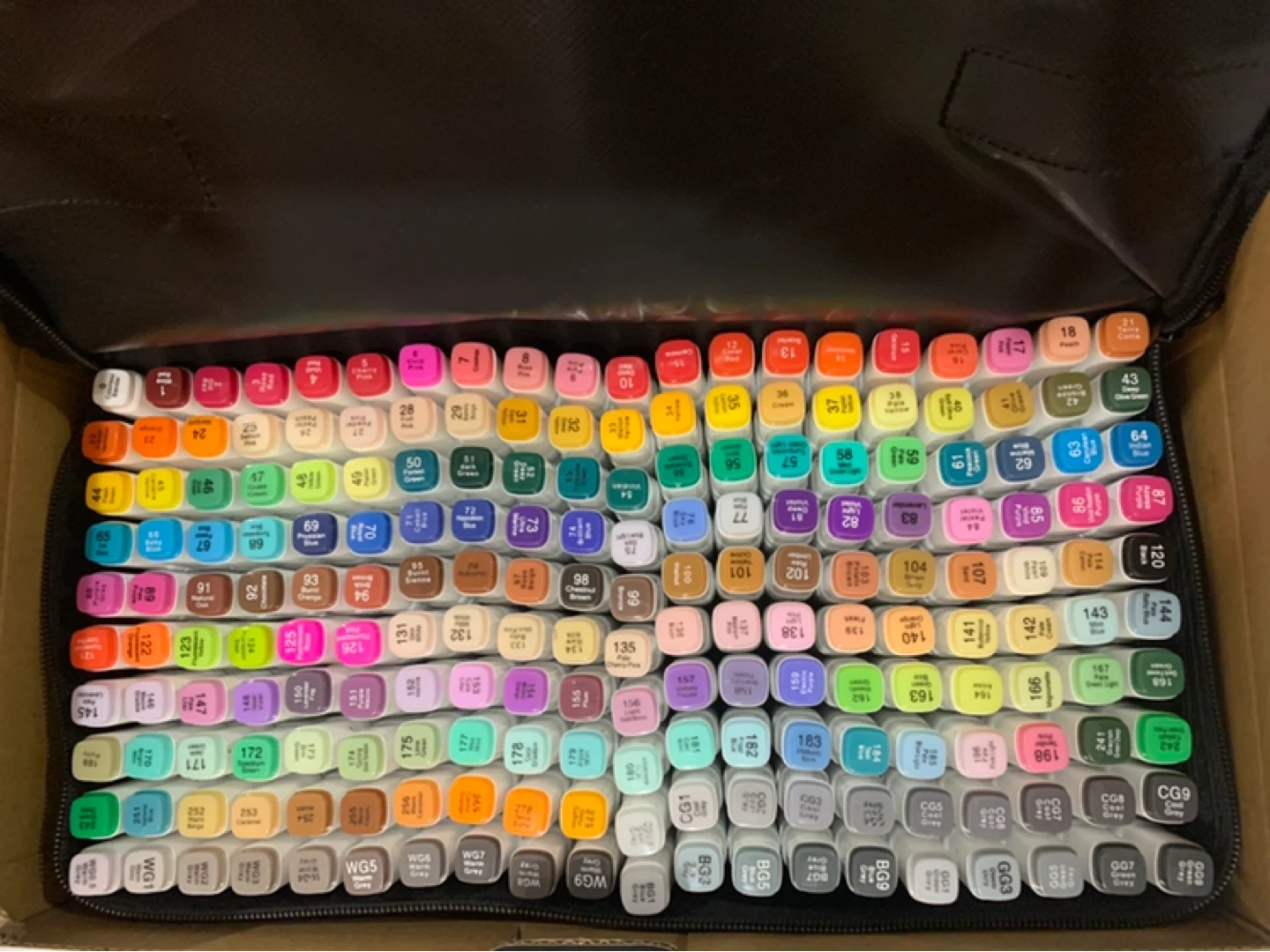 Set of 200 SAVZJSD twin markers with alcohol ink and vibrant colours. Includes a carrying case for organization. Perfect for artists and crafters!