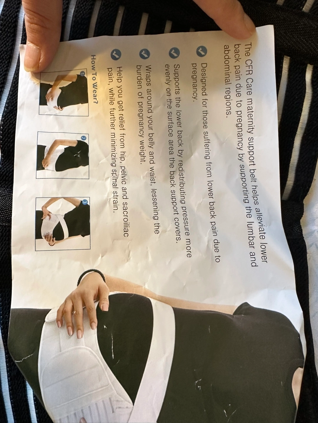 Helps alleviate lower back pain due to pregnancy. Supports the lumbar and abdominal regions. Designed for those suffering from lower back pain due to pregnancy. Wraps around your belly and is designed to help you get relief from hip, pelvic, and sacroiliac pain. Supports lower back by redistributing pressure more evenly on the surface area the back support covers.