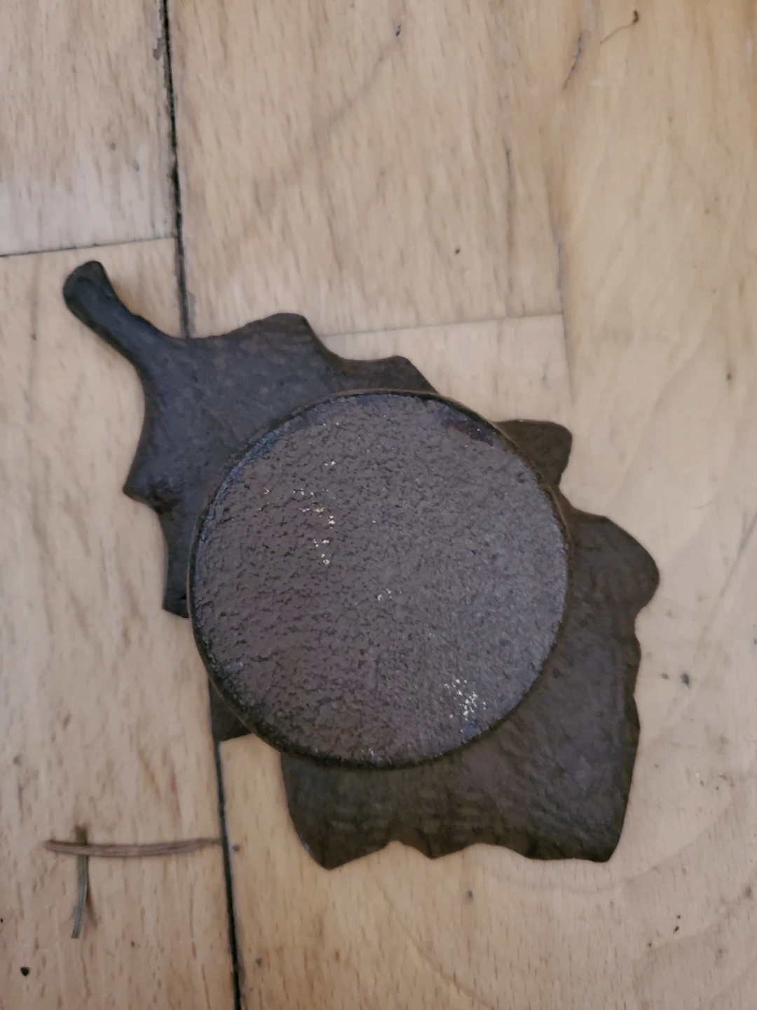 This is a cute leaf-shaped candle holder! It's perfect for adding a touch of nature to your home decor. Cedar pick up. Holder is metal.