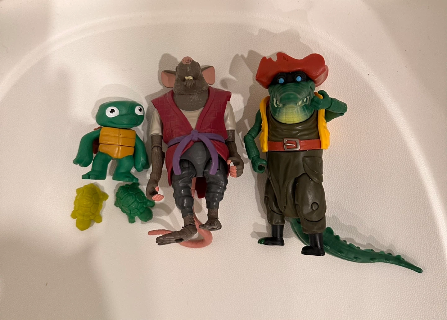 Selling a set of Teenage Mutant Ninja Turtles action figures! Includes Splinter, Leatherhead, and a turtle figure. Great for collectors or kids who love TMNT. $20 for all!