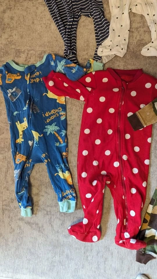 Selling baby sleepers as a bundle. This bundle is mostly 9-12 month size, with one army print sleeper being 18 months. I Located near Greenwood and Danforth.