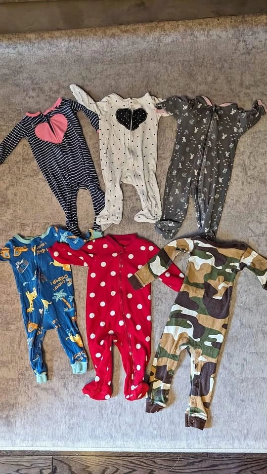 Selling baby sleepers as a bundle. This bundle is mostly 9-12 month size, with one army print sleeper being 18 months. I Located near Greenwood and Danforth.
