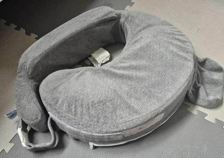 Gently used My Brest Friend nursing pillow. It's in great condition and provides excellent support for breastfeeding. The pillow is grey and made of a soft, comfortable material. Home is pet and smoke free.