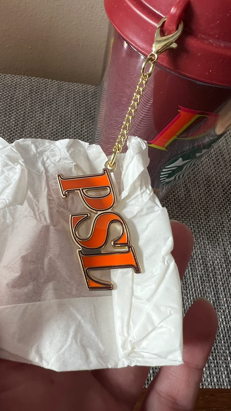 Festive Fall Starbucks Pumpkin Spice Latte tumbler comes with a removable PSL charm!
