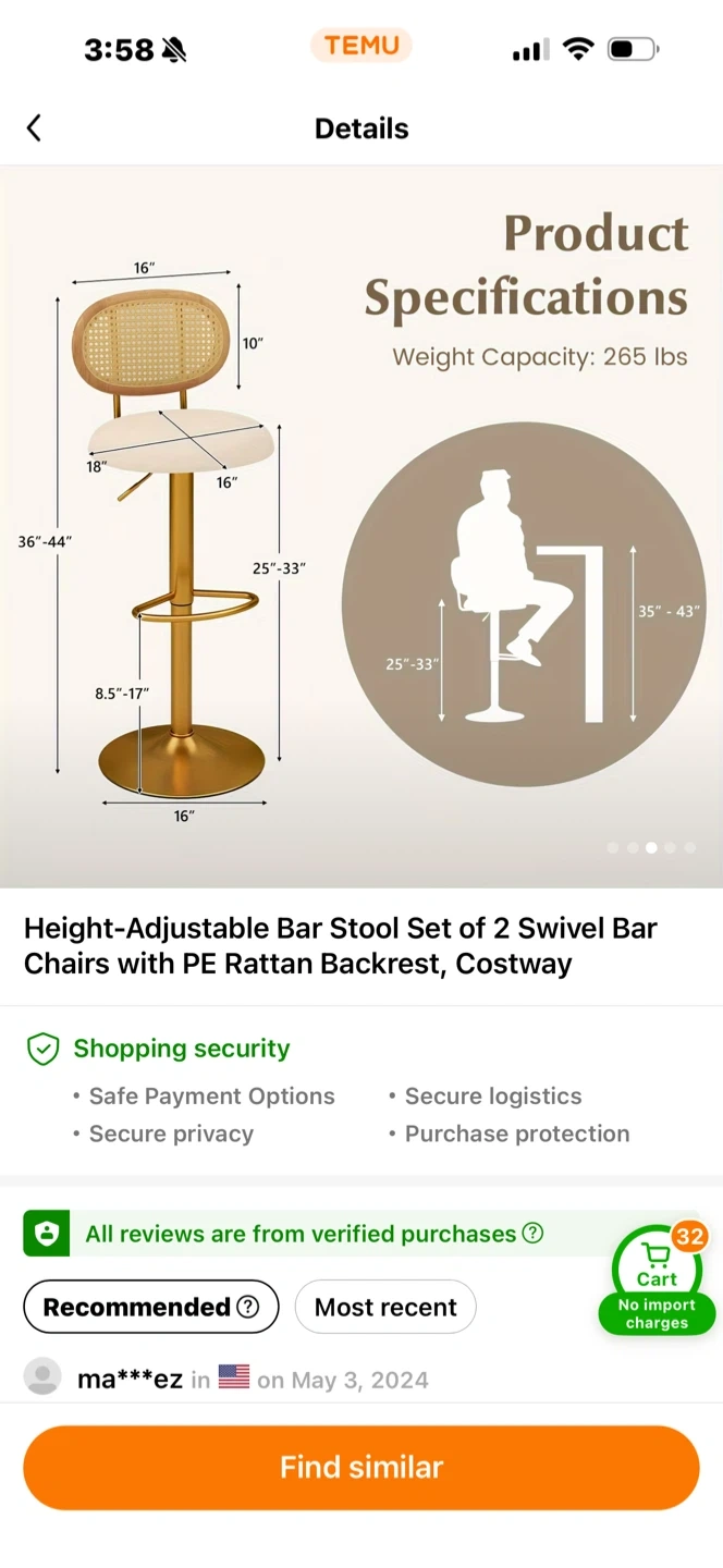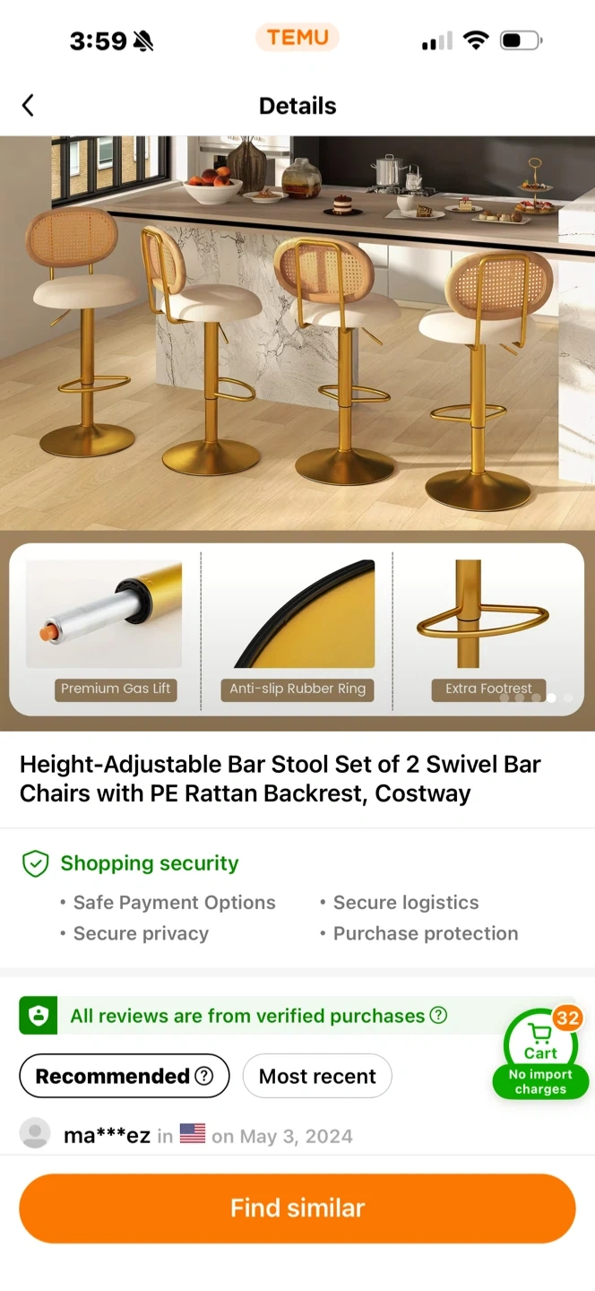 This set includes two height-adjustable swivel bar stools. They feature PE rattan backrests and comfortable cushioning. The base has an anti-slip rubber ring and an extra footrest.