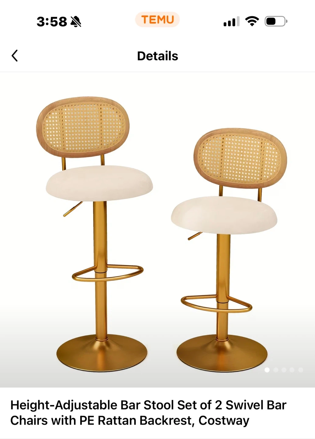 This set includes two height-adjustable swivel bar stools. They feature PE rattan backrests and comfortable cushioning. The base has an anti-slip rubber ring and an extra footrest.
