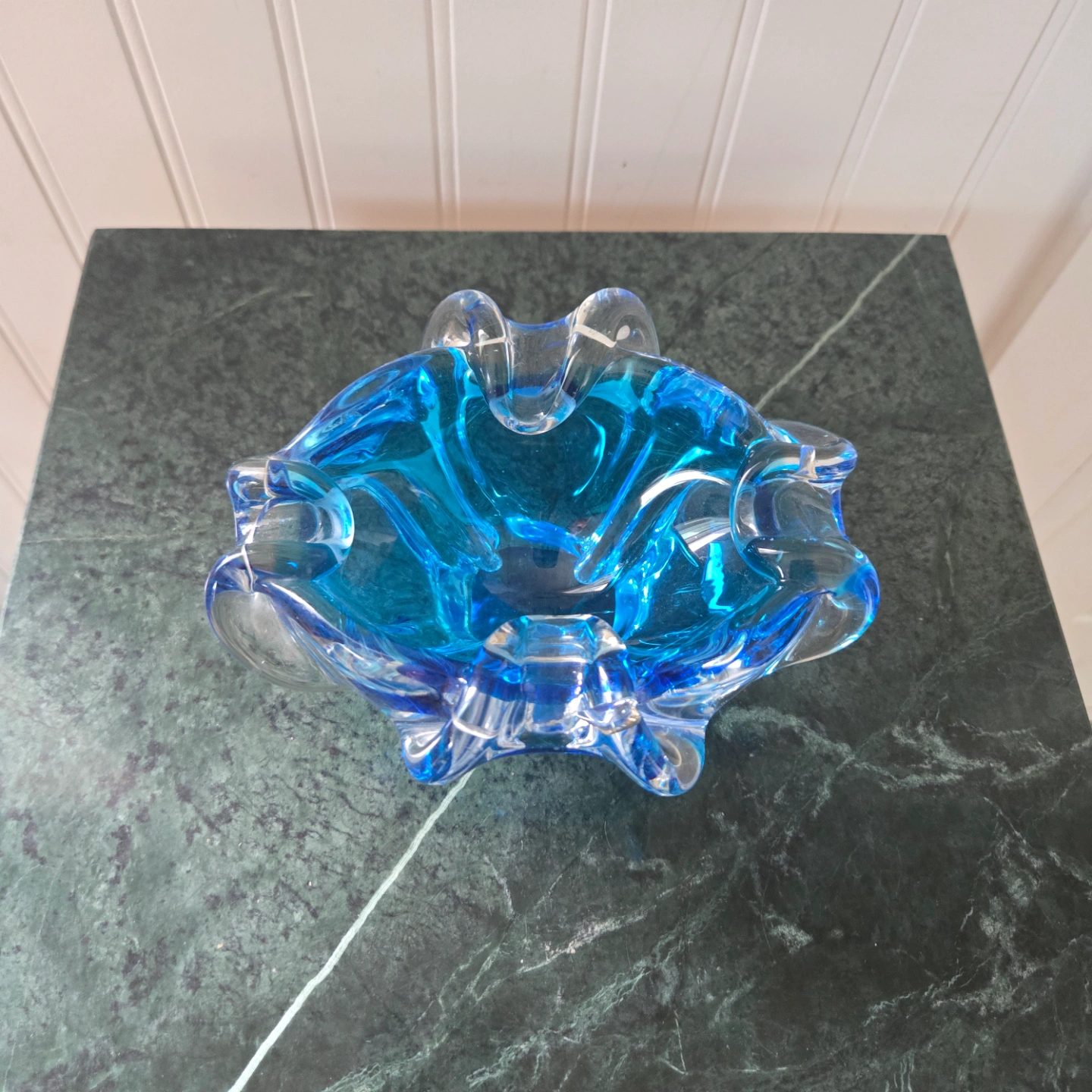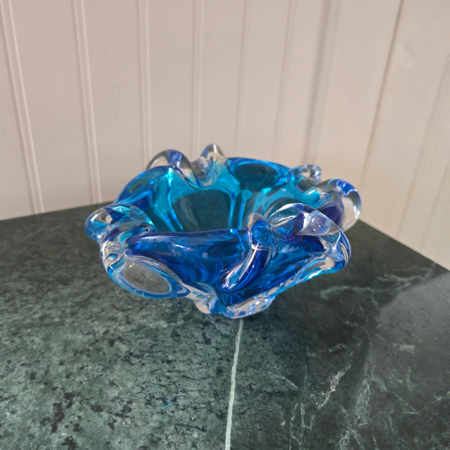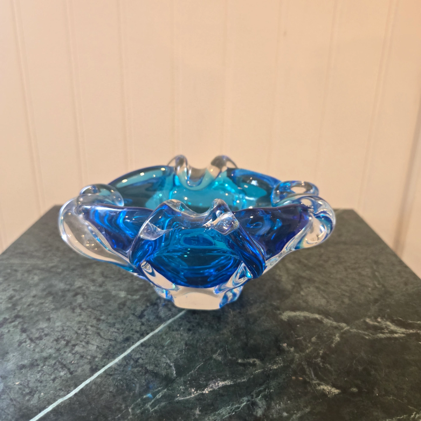 This Vintage Murano bowl in a gorgeous electric blue, is an amazing addition to any glass enthusiasts collection. is an attractive shade of blue. Use it as decorative piece or for functional place to store your favourite jewellery.
