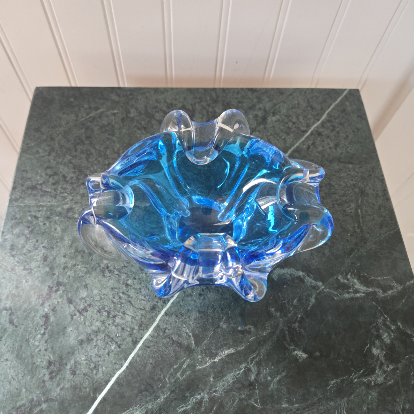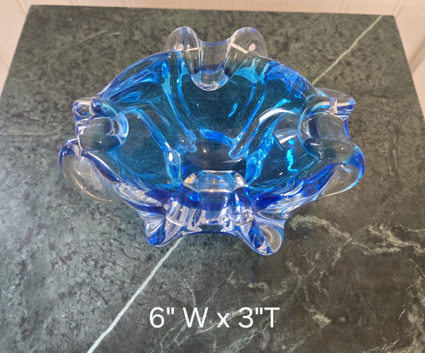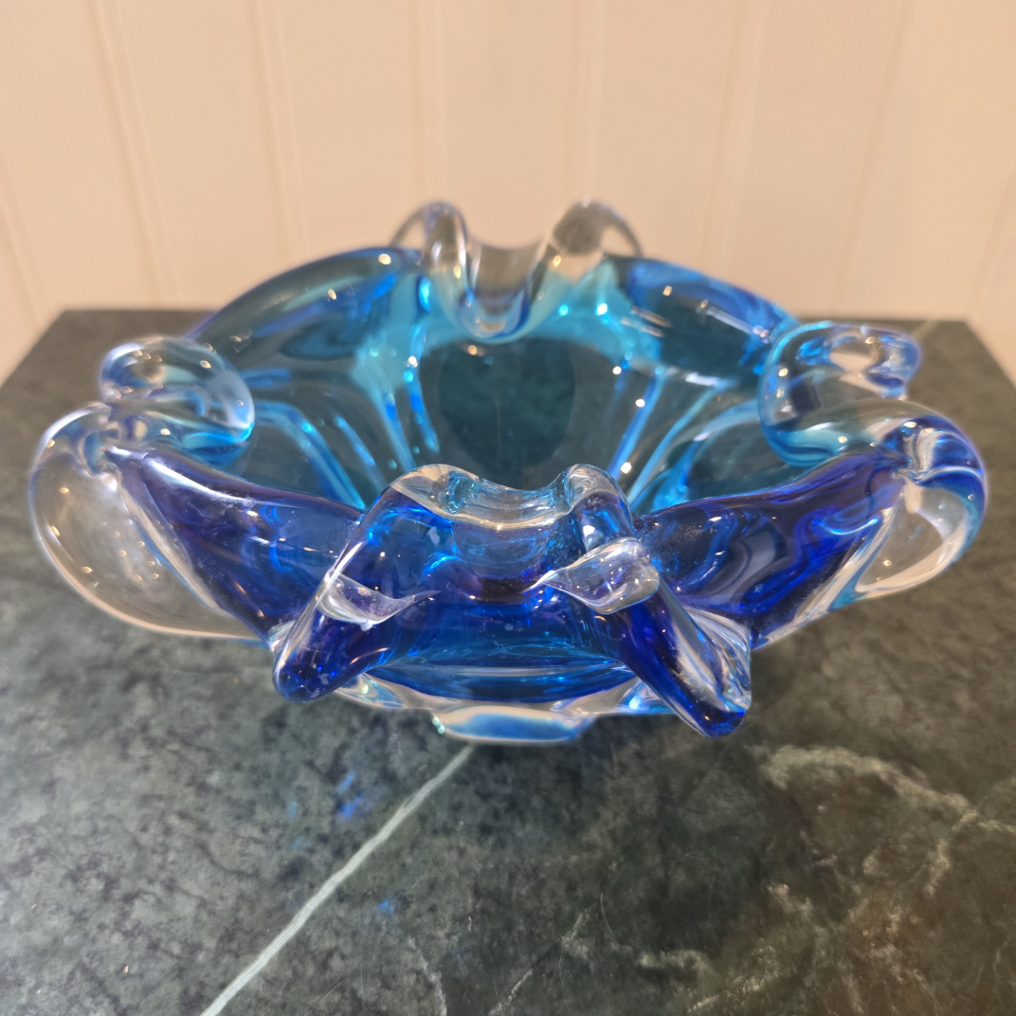 This Vintage Murano bowl in a gorgeous electric blue, is an amazing addition to any glass enthusiasts collection. is an attractive shade of blue. Use it as decorative piece or for functional place to store your favourite jewellery.
