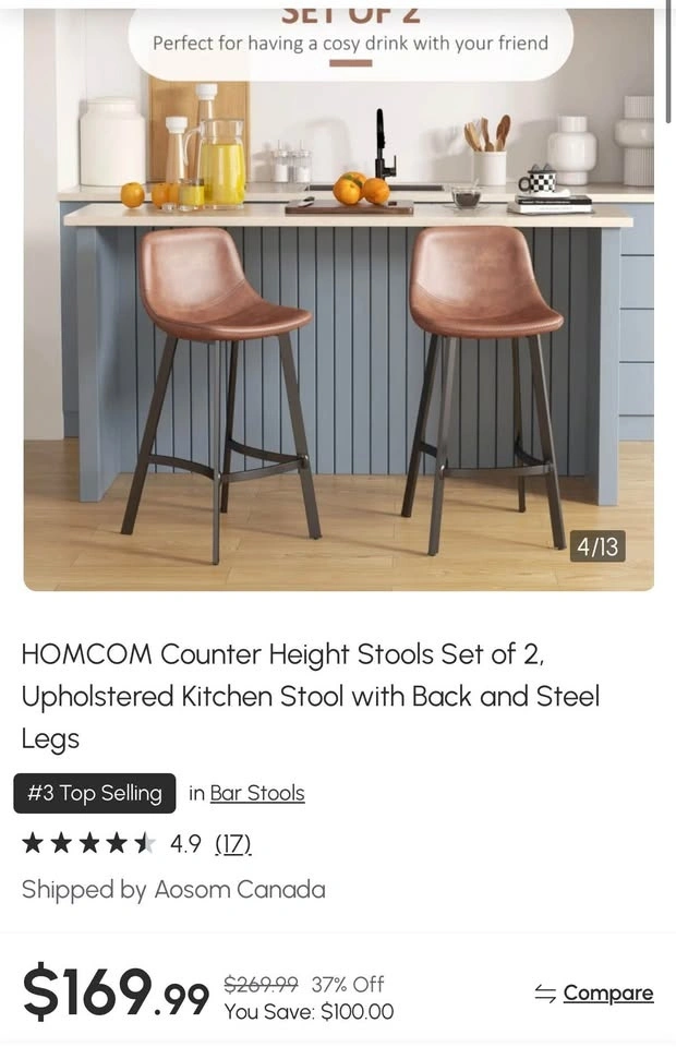 Buy & SellBrand New! Counter Height Stools Set of 2Brand New! Counter Height Stools Set of 2$140Brand New Counter Height Stools Set of 2, Upholstered Kitchen Stool with Back and Steel Legs.WHERE TO MEETCheck LocationView MapSELLERLezginTerwillegar Towne677 reviews1 chats·2 favorites·54 viewsSEND CHAT TO SELLERHi Lezgin! I’m interested in your listing.Hi Lezgin! I’m interested in your listing.Get the Karrot app to chatSign In to chat